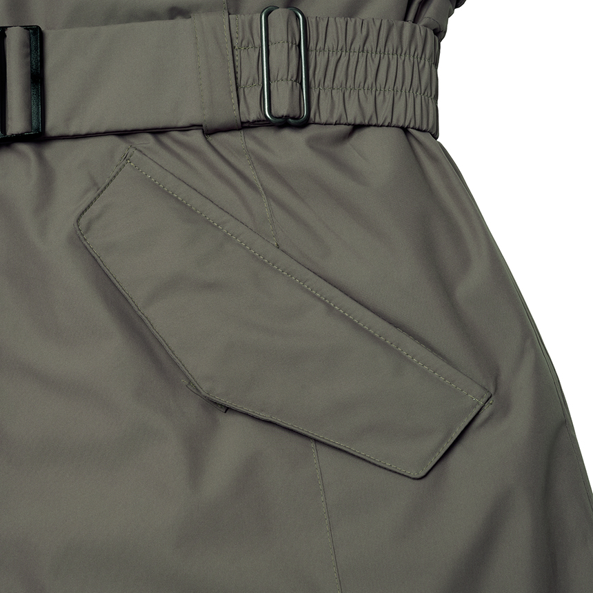 허리 라인에 벨트가 추가되어 여성스러운 실루엣 연출이 가능하며, 벨트는 탈부착이 가능해 기호에 따라 다양한 스타일링이 가능합니다.