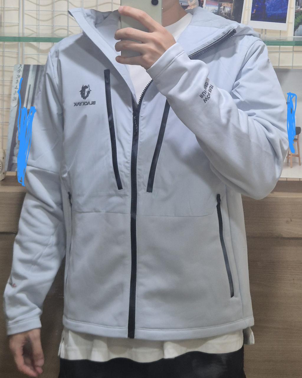 전체 폴라텍 원단에 방풍이 필요한 부위인 후드와 가슴앞판, 소매엔 우븐이 덧대어져 있어 보온과 투습이 동시에 제공 됩니다.