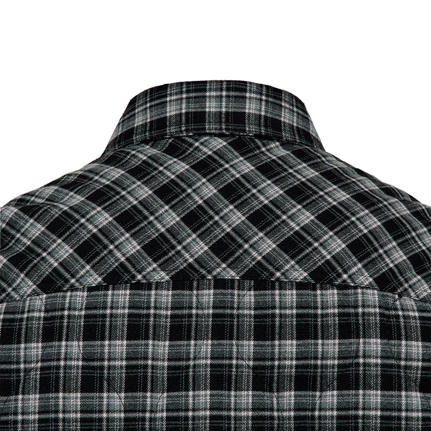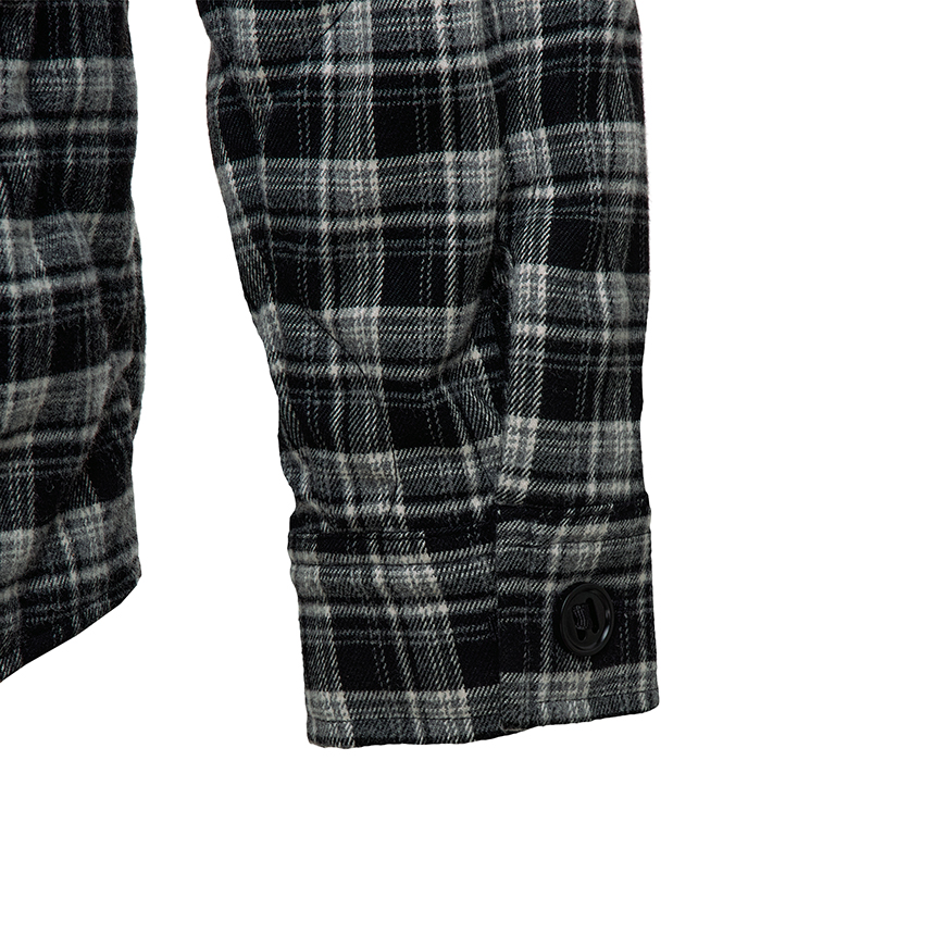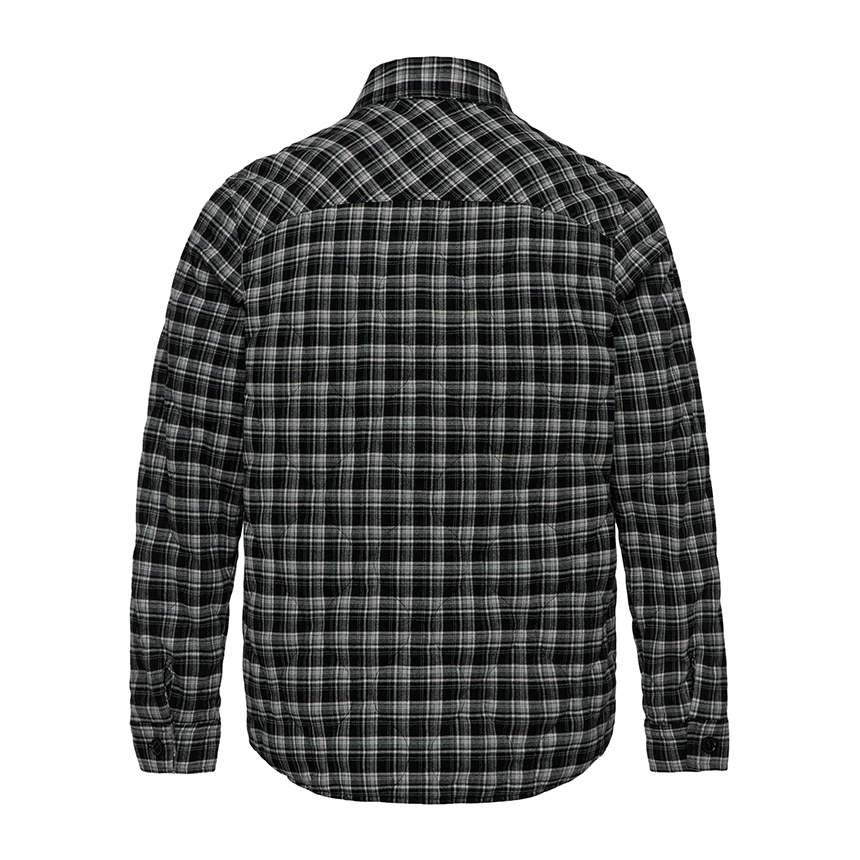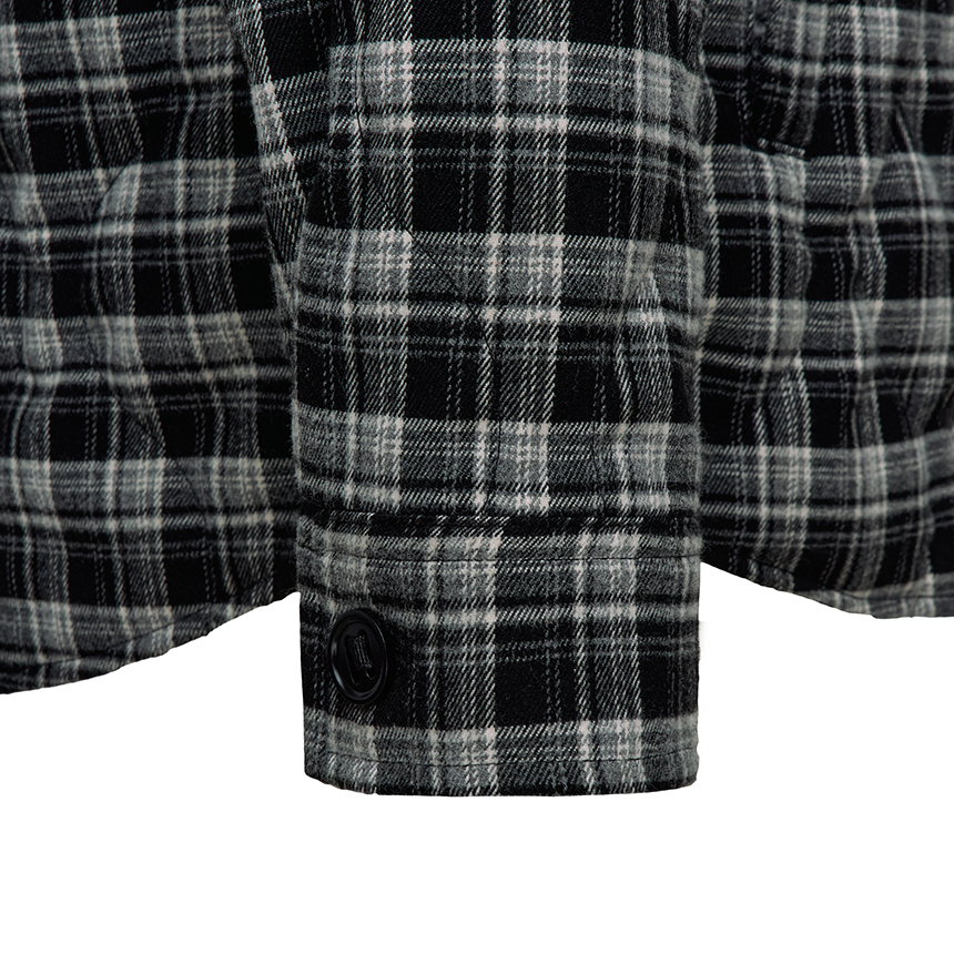 따뜻한 질감과 부드러운 착용감을 느낄 수 있는 체크 원단에 가벼운 패딩 충전재를 적용하여 체감 온도를 향상시킵니다.