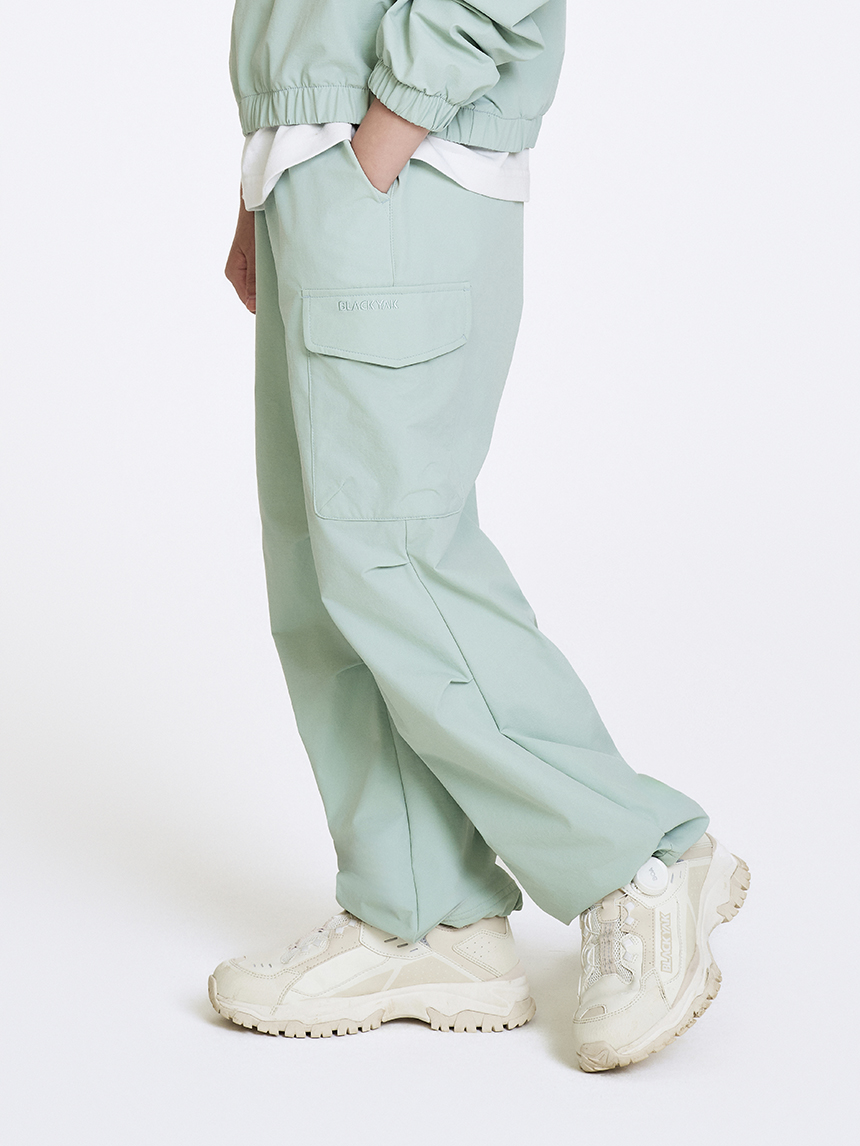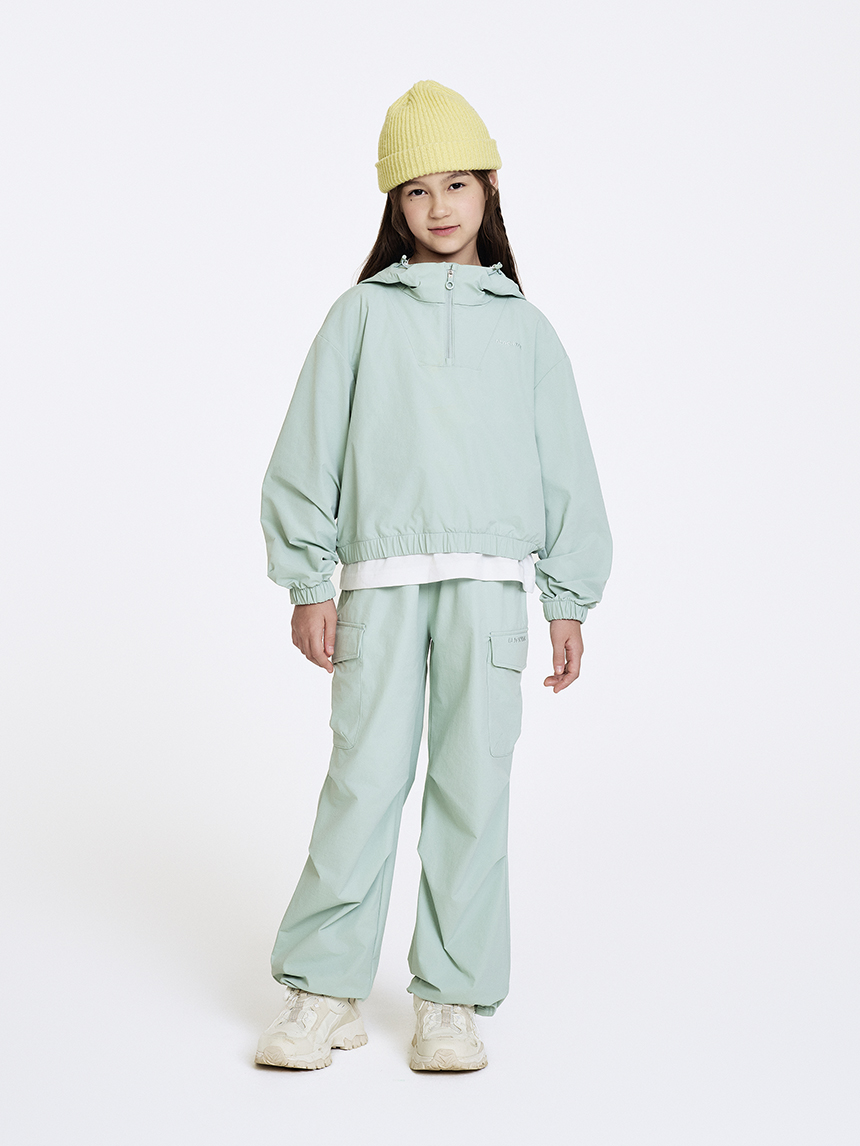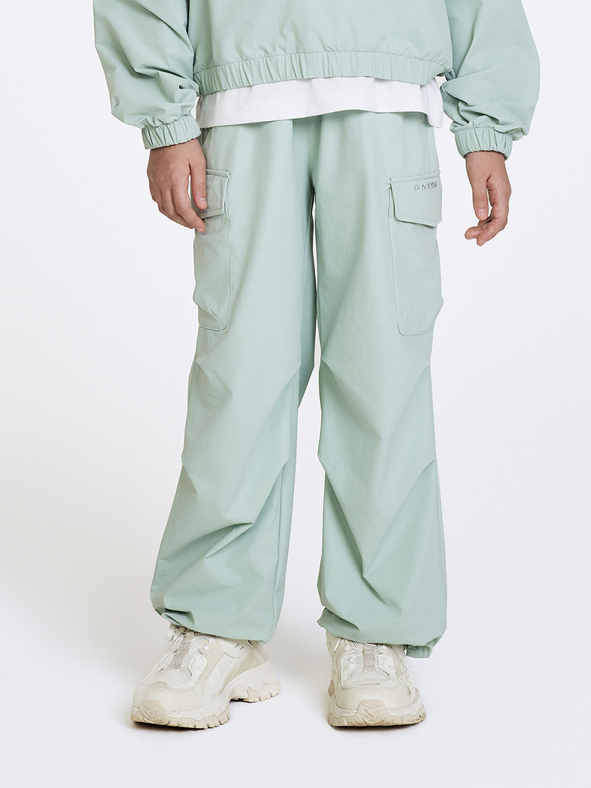 - 트렌디한 셋업 연출이 가능한 여아전용 우븐 파라수트(와이드 팬츠)입니다.
