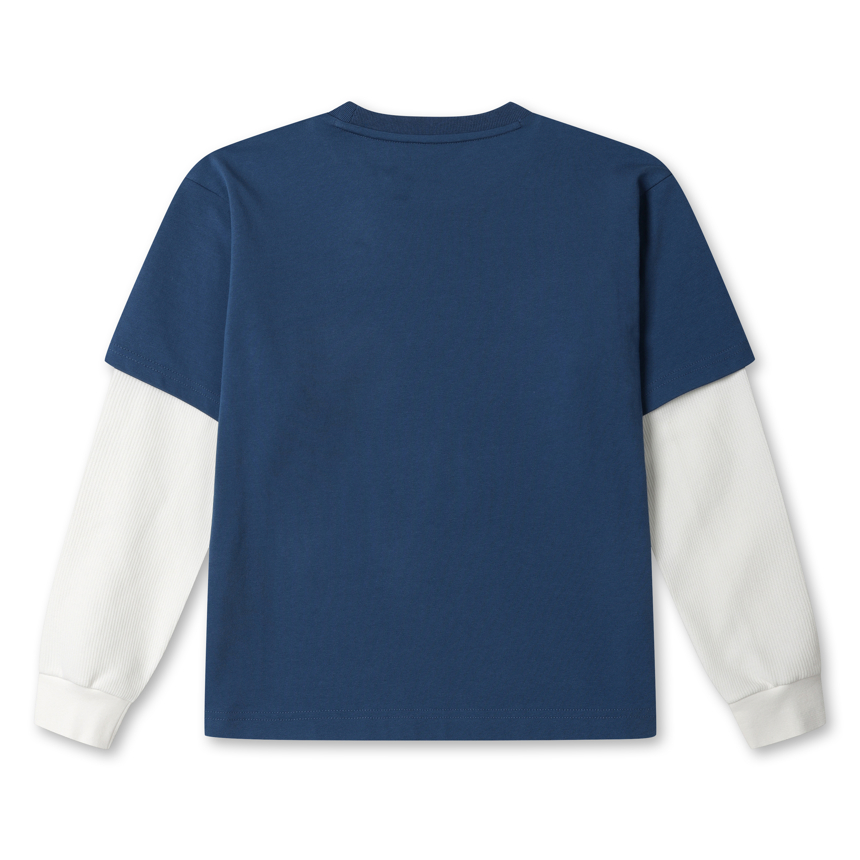 - 두 가지 소재를 사용하여 트렌디한 감각을 살린 소매 레이어드 긴팔티셔츠입니다.
