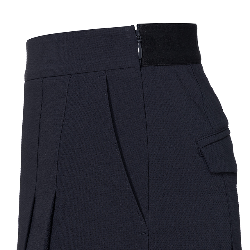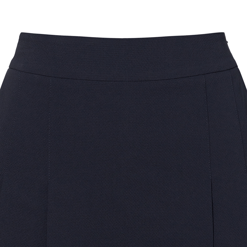 - 써커 조직감이 돋보이는 하프팬츠로, 앞판 플리츠 커버 디테일로 큐롯처럼 보이는 여성스러운 실루엣을 연출