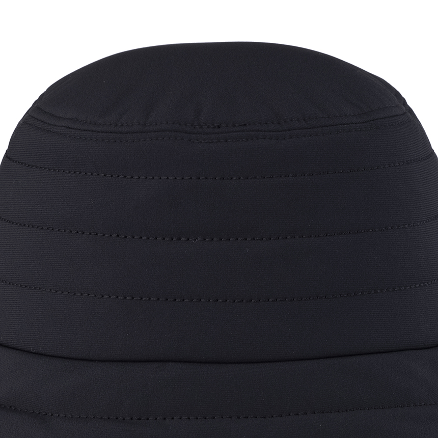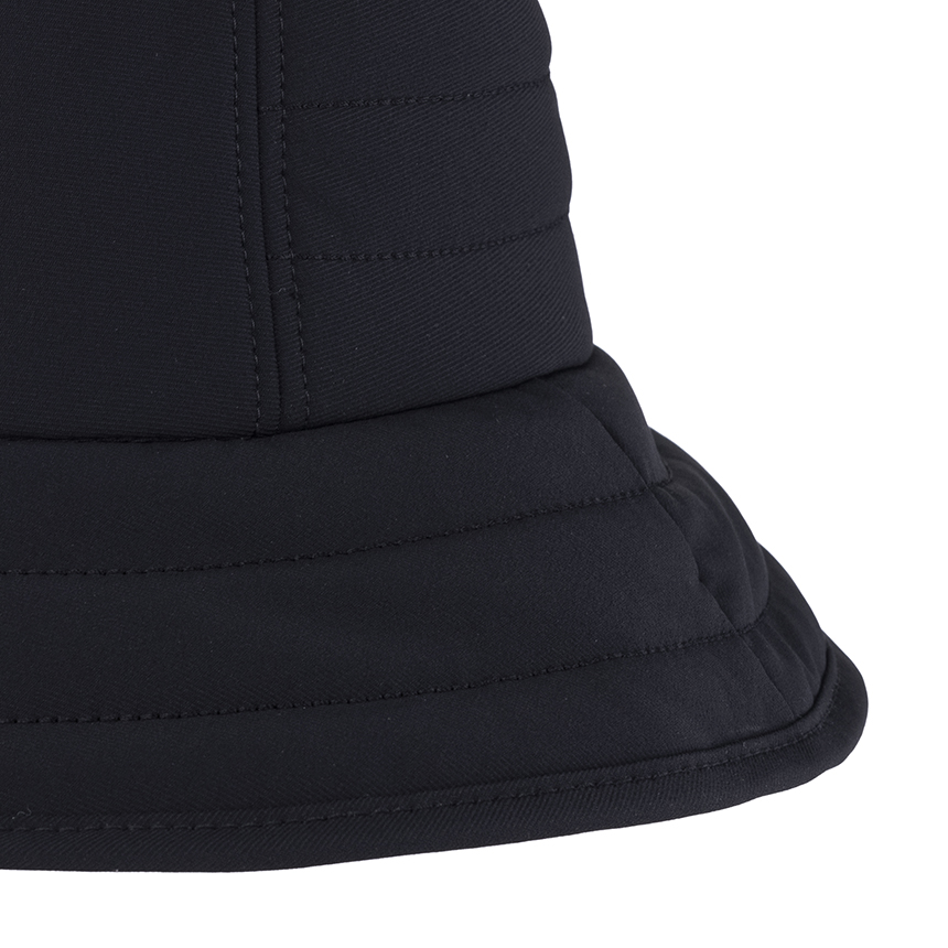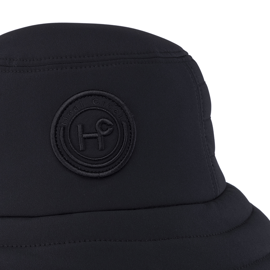 -와펜포인트 장식의 패딩 버킷햇 스타일