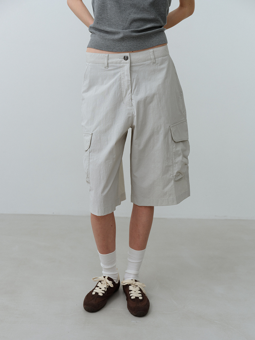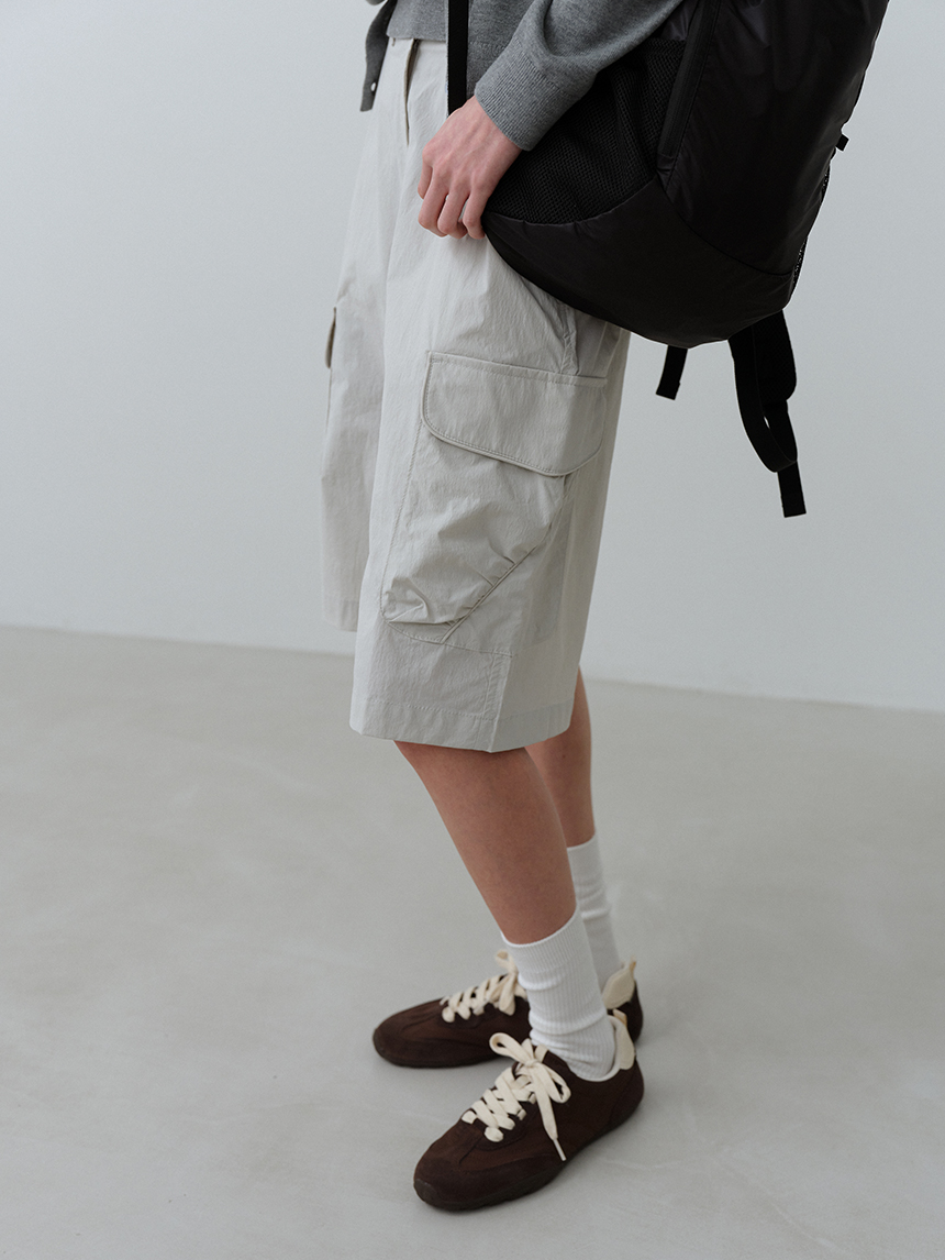 무릎 아래 버뮤다 기장과 입체적인 카고 포켓 디테일이 더해져, 활동성과 수납력을 동시에 갖춘 실용적인 디자인입니다.