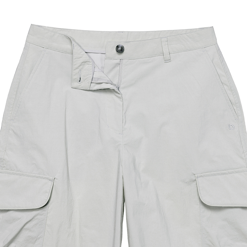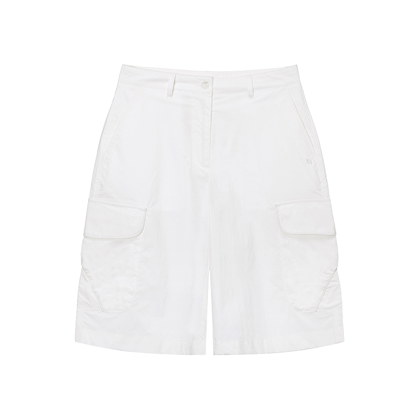 뱀부 나일론 혼방 소재로 부드러운 착용감과 뛰어난 내구성을 자랑하는 여성 세미 루즈 핏 버뮤다 카고 팬츠입니다.