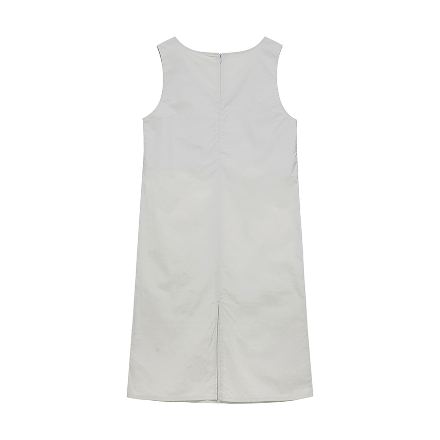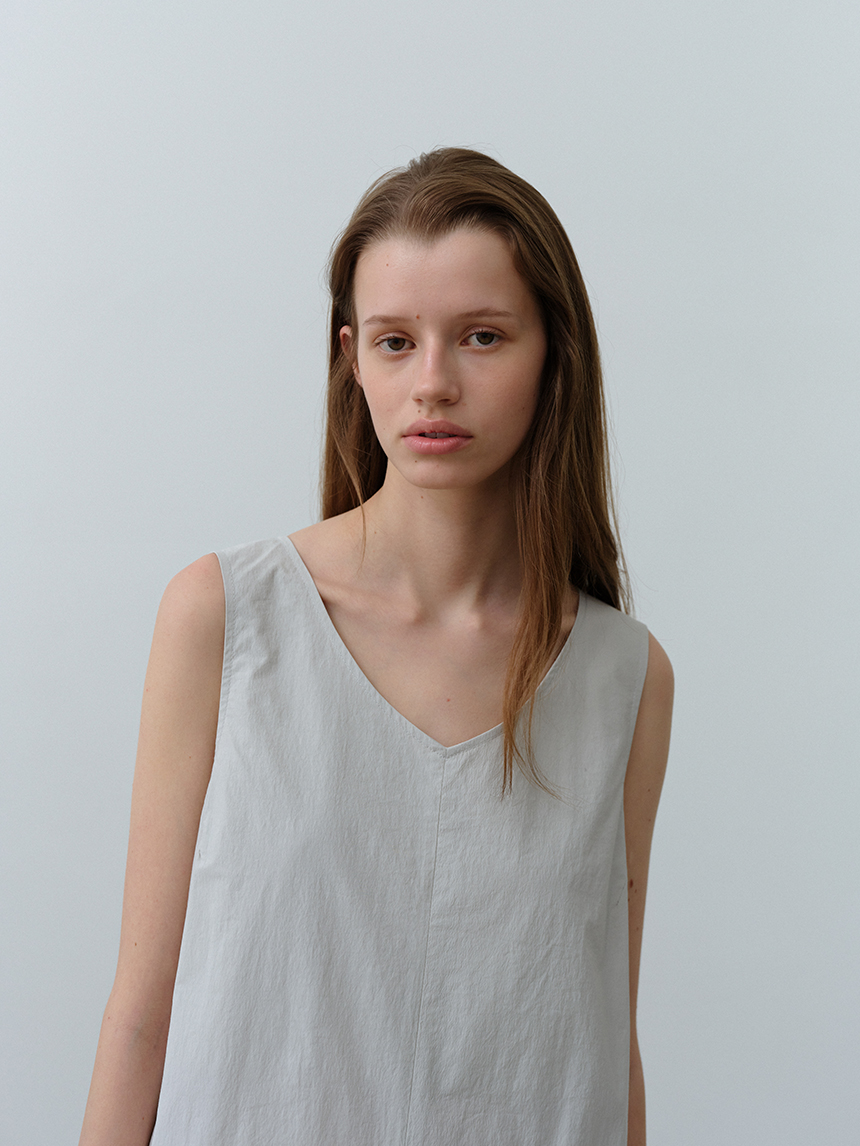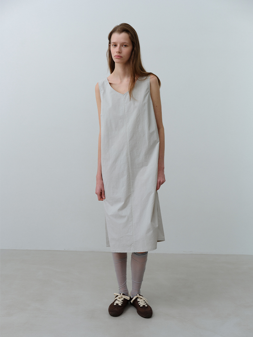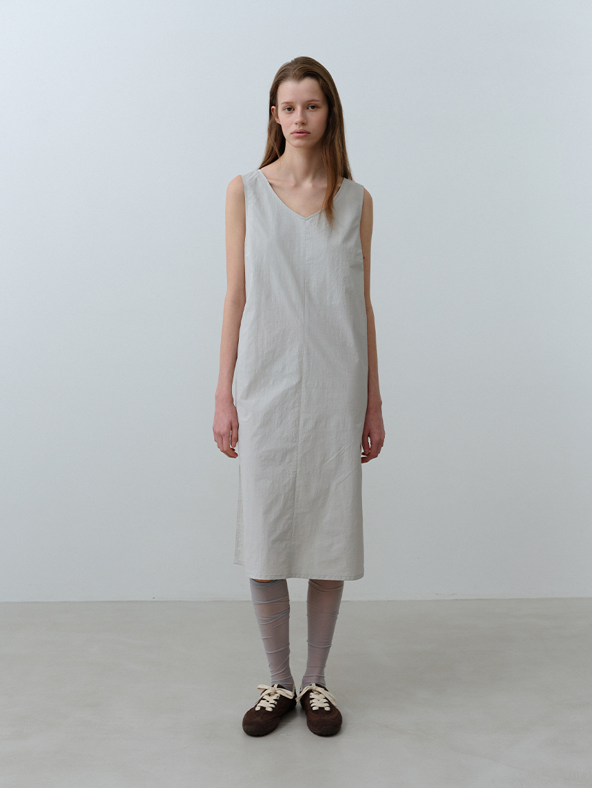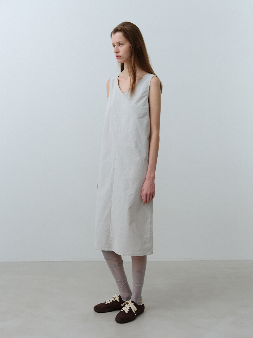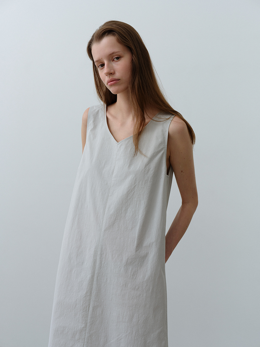 뱀부 나일론 혼방 소재로 부드러운 착용감과 뛰어난 내구성을 자랑하는 미니멀한 레귤러 핏의 브이넥 원피스입니다.