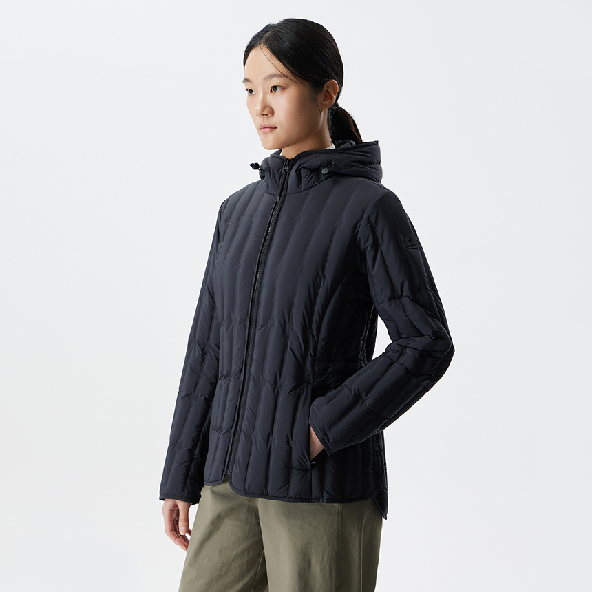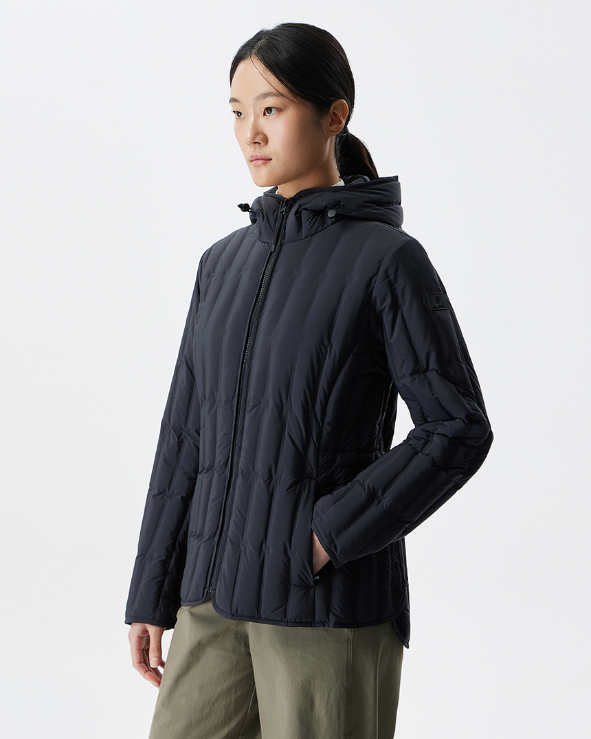 가벼운 착용감의 여성스러운 실루엣의 경량 다운 제품으로 일교차가 큰 초겨울 부터 겨울까지 활용도 높은 아이템입니다.