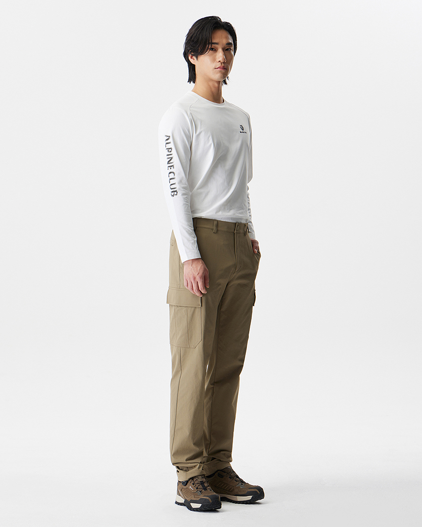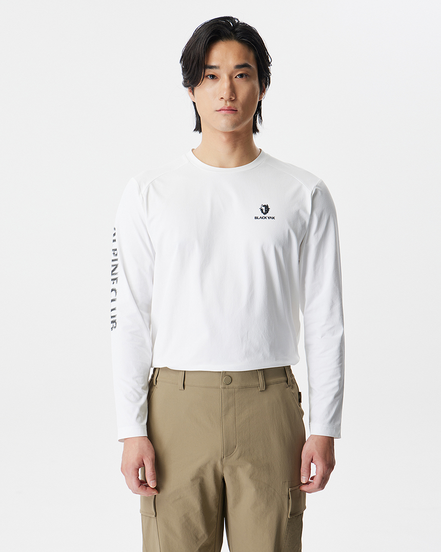 적당한 미드기장이며 티셔츠로 산행용 베이스레이어 또는 일상생활에서도 편하게 입을 수 있습니다.