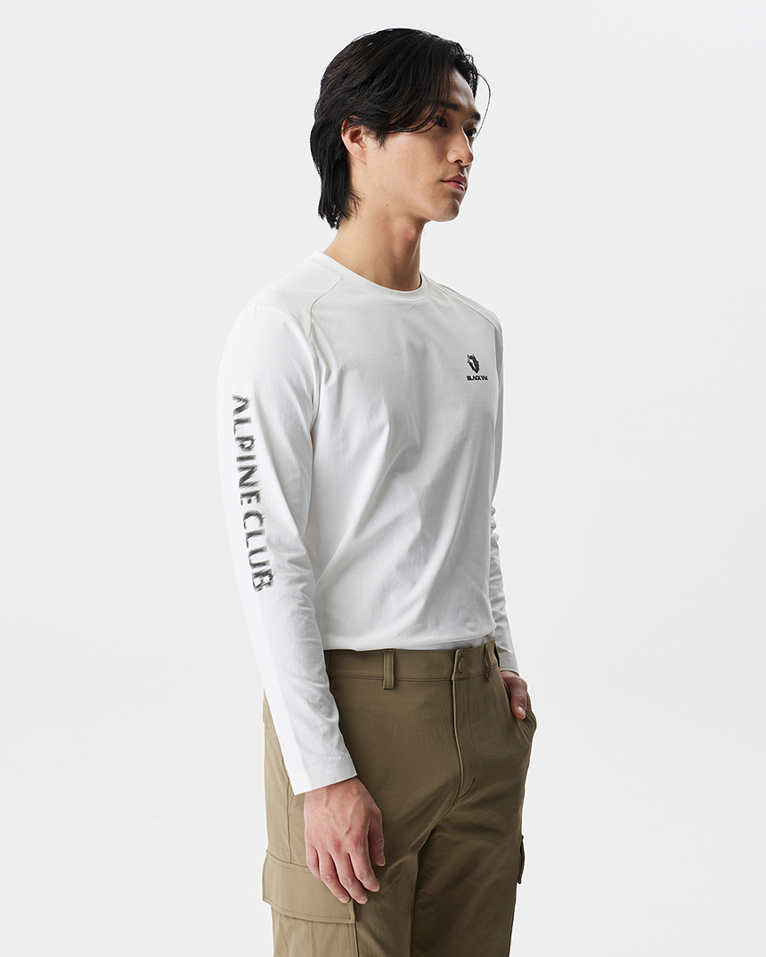 깔끔한 디자인에 소매부분에 <ALPINE CLUB> 그래픽 레터링 프린트 적용했습니다.