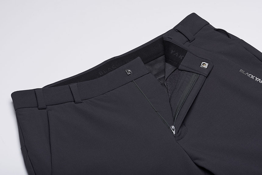 신축성이 매우 좋은 팬츠에 원단을 본딩 하지 않고 하나의 원단으로 원단이 부드러우며