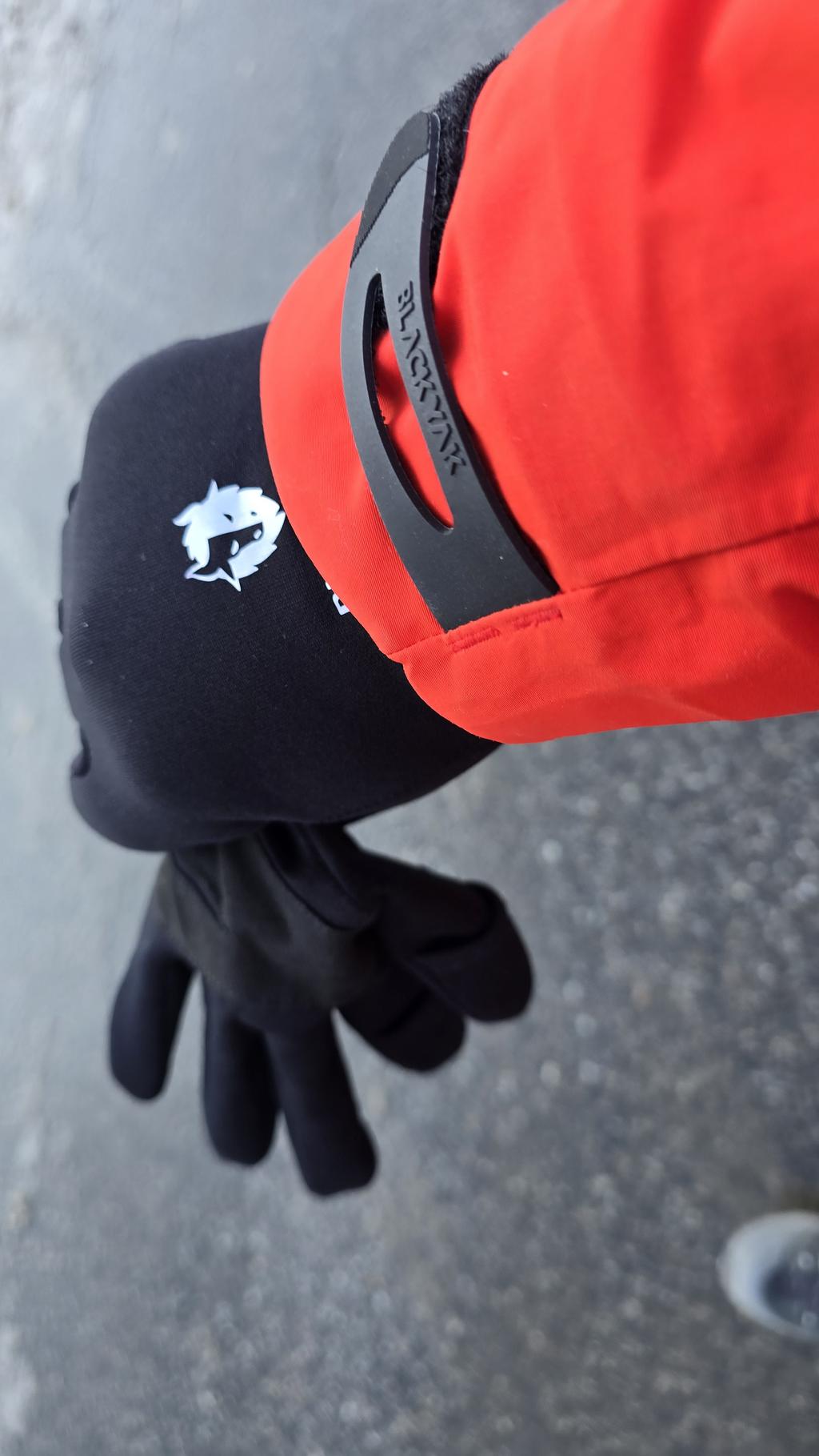 손등 부분에는 블랙야크 로고가 헤어라인 전사 포인트로 적용되어