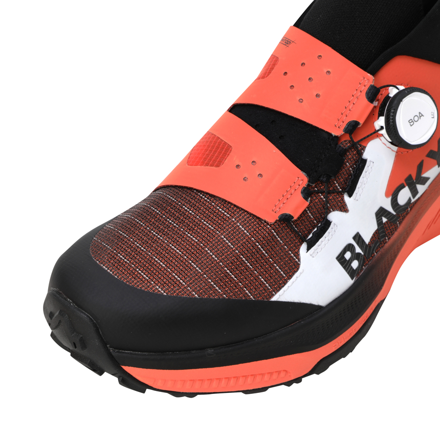 BOA와 협업 개발한 Dynamic Wrap 시스템, 친환경 폴리에스터 와 TPU,TPEE 로 구성된 Tytan Jaquard upper를 통해 강한 내구성과 안정적인 피팅이 강점 입니다.