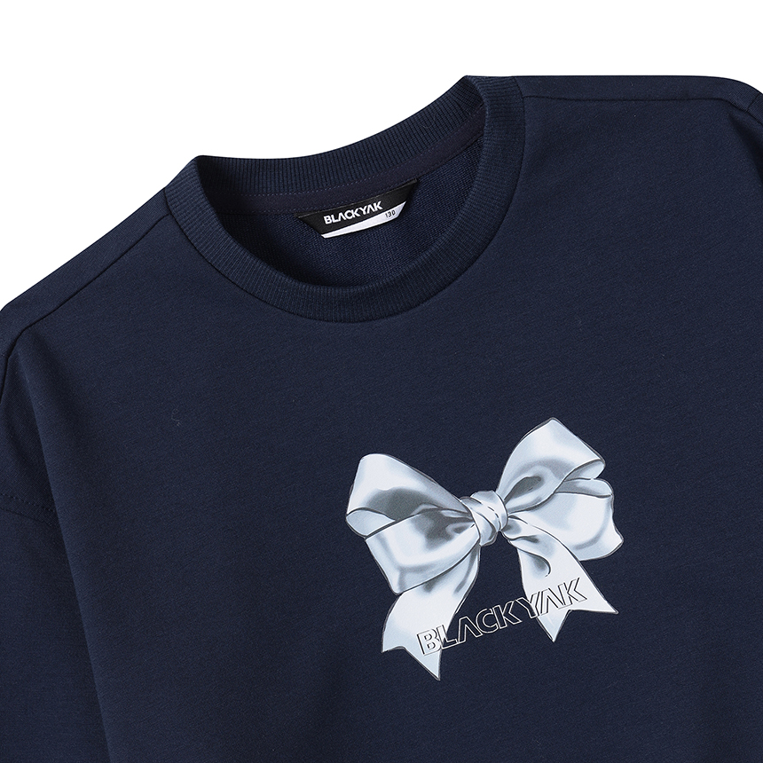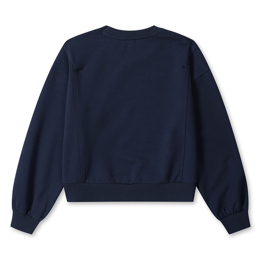 - 그래픽 포인트가 돋보이는 여아전용 오버핏 니트 맨투맨입니다.
