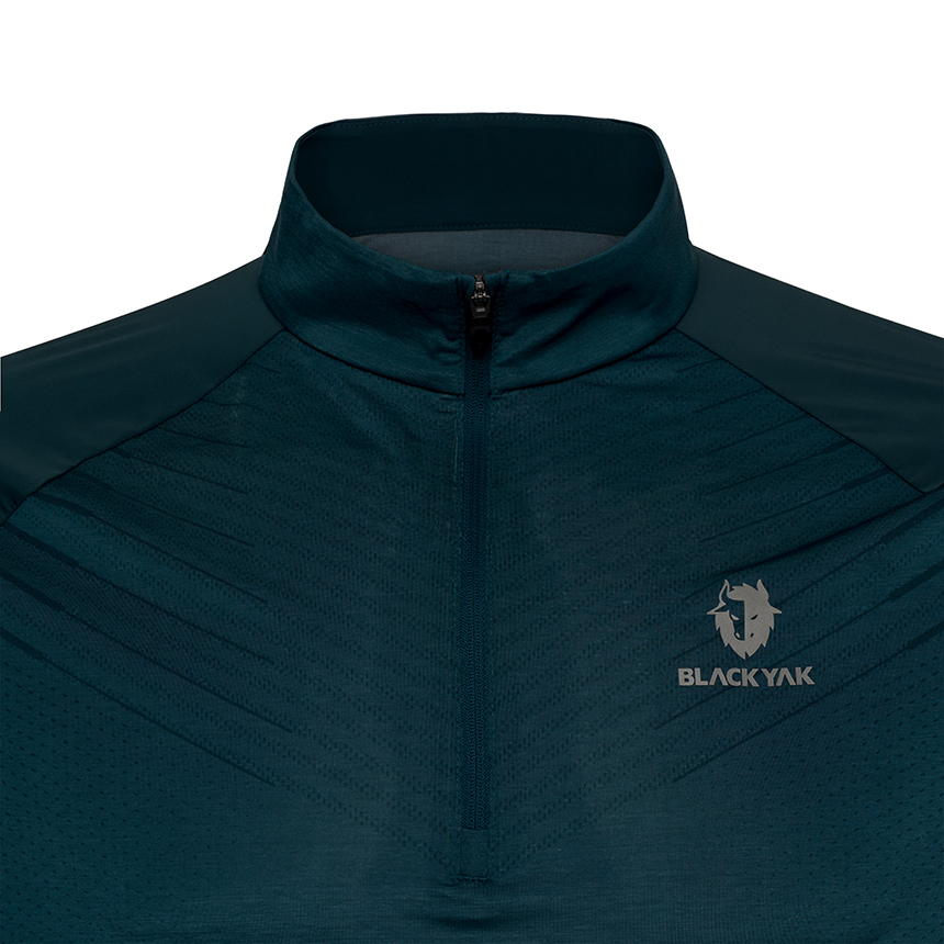 블랙야크를 형상화한 그래픽 프린트가 돋보이는 집업 긴팔 티셔츠입니다.