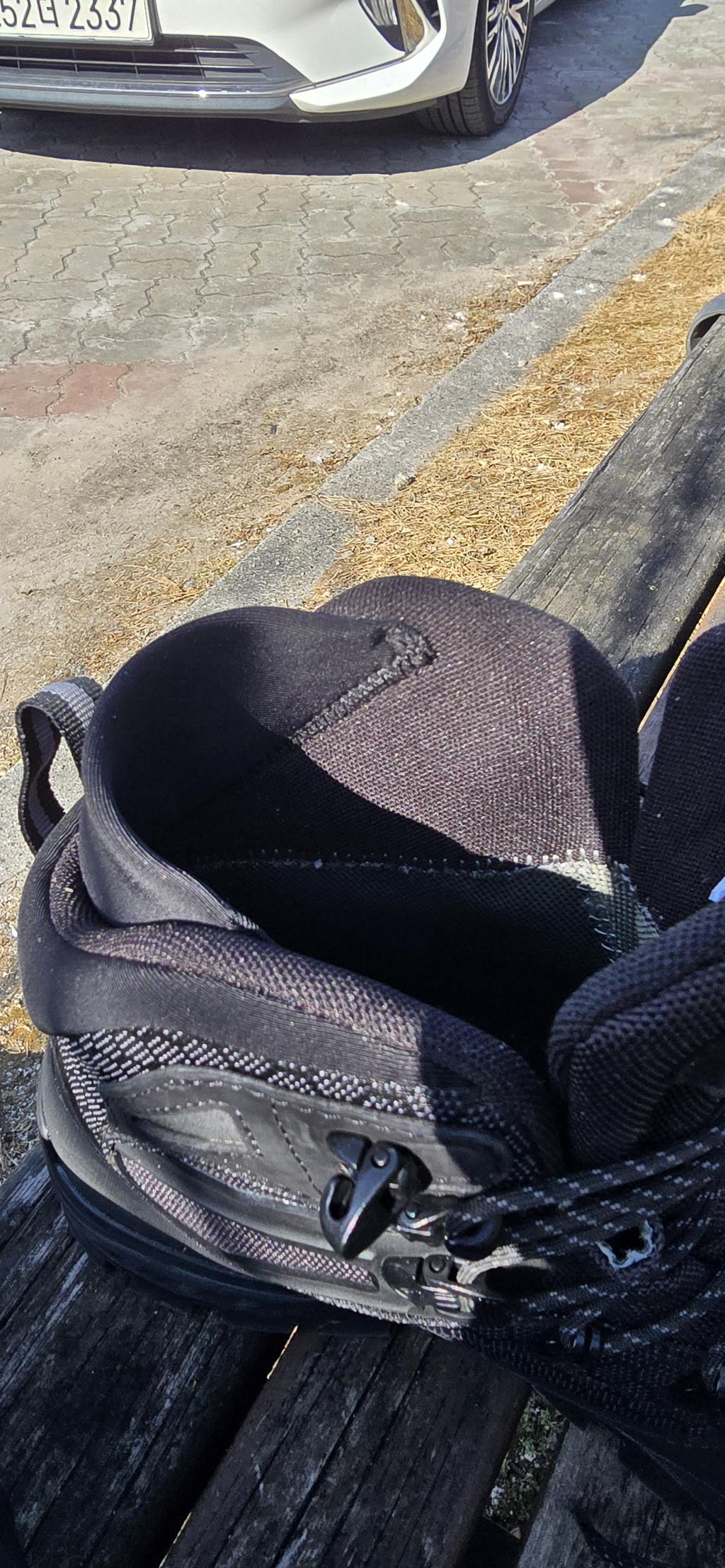 | 소재 | 겉감 : 폴리에스터 41%, 폴리염화비닐 5%, 합성고무 39%, 천연가죽(소가죽) 15% 안감 : 폴리에스터 20%, 고어텍스 80% 창 : TPU 10%, 파이론 40%, 합성고무 50% |