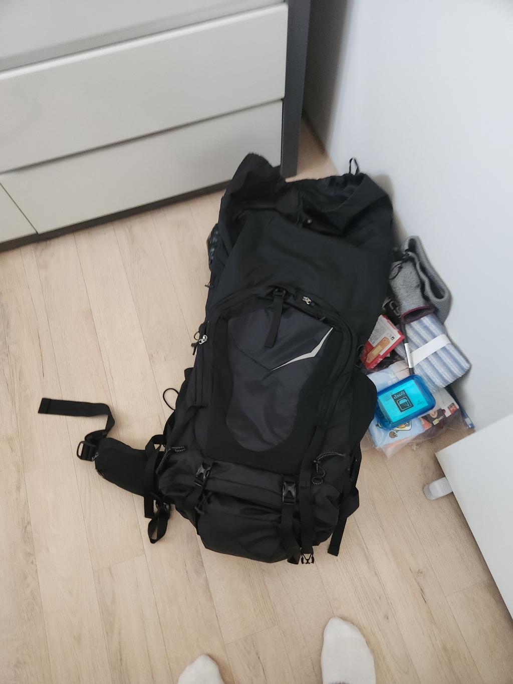 중장기 산행, 백패킹 등의 활동에 적합한 60리터 후드형 대용량 배낭입니다.