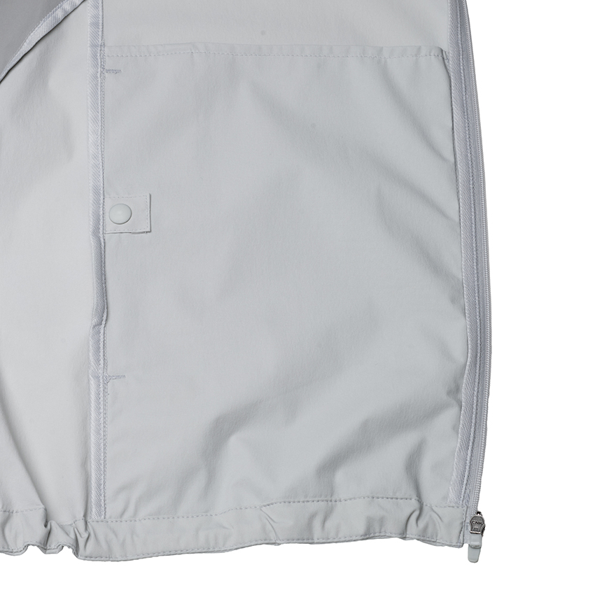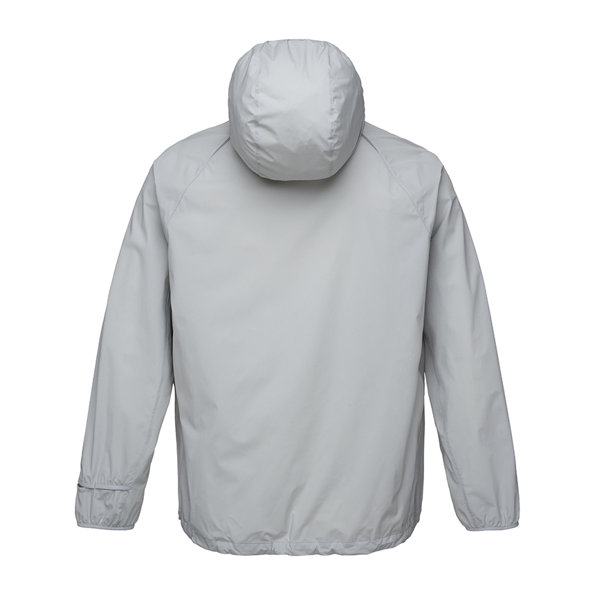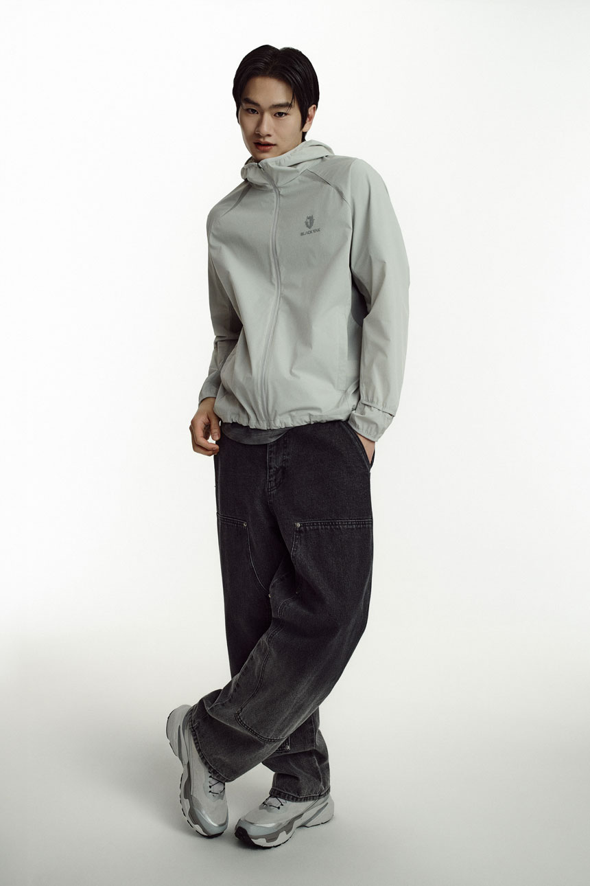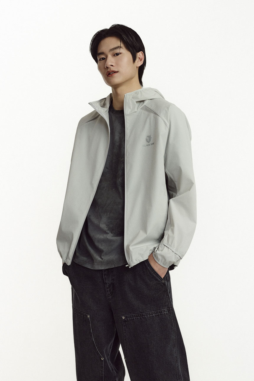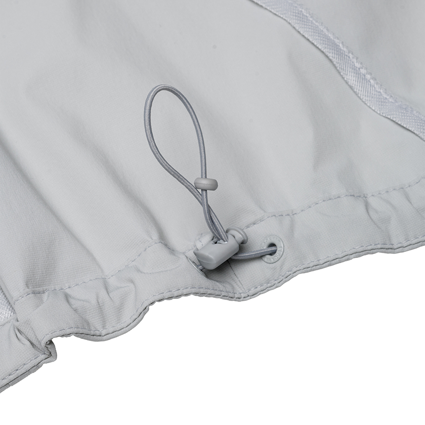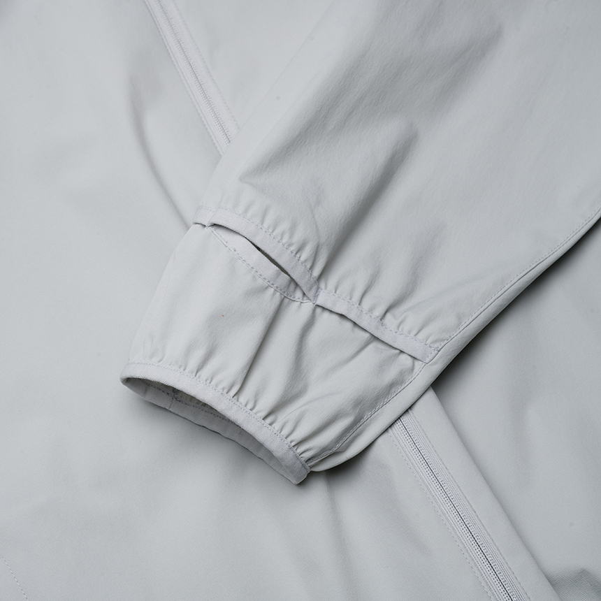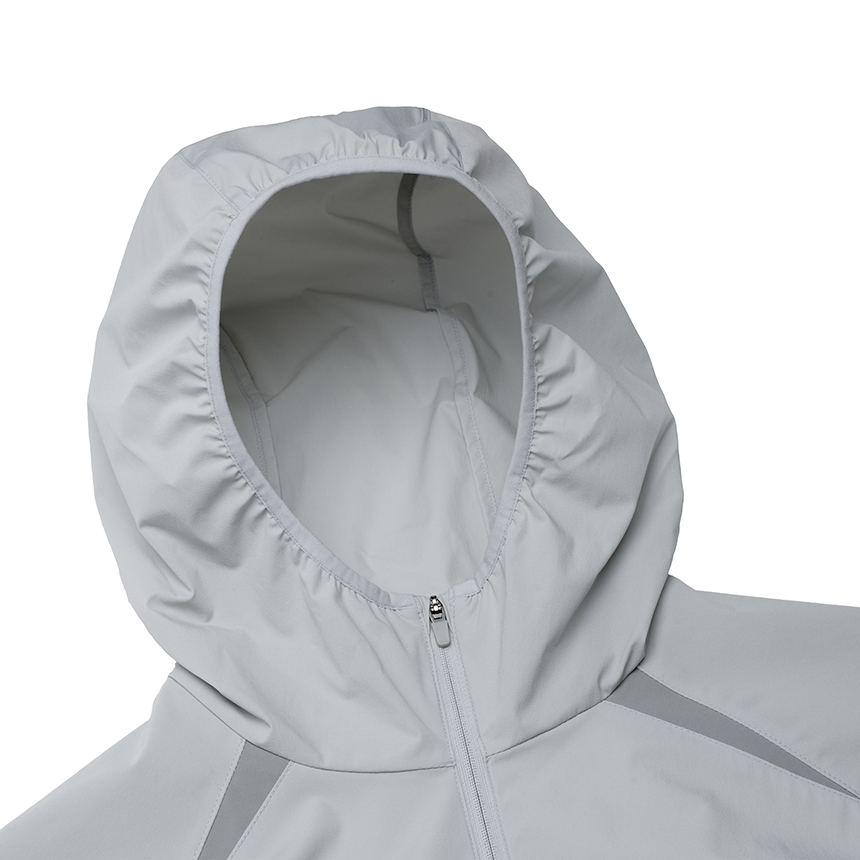 스트레치성이 우수한 나일론 스판 소재를 적용한 여름용 후드 일체형 바람막이로,