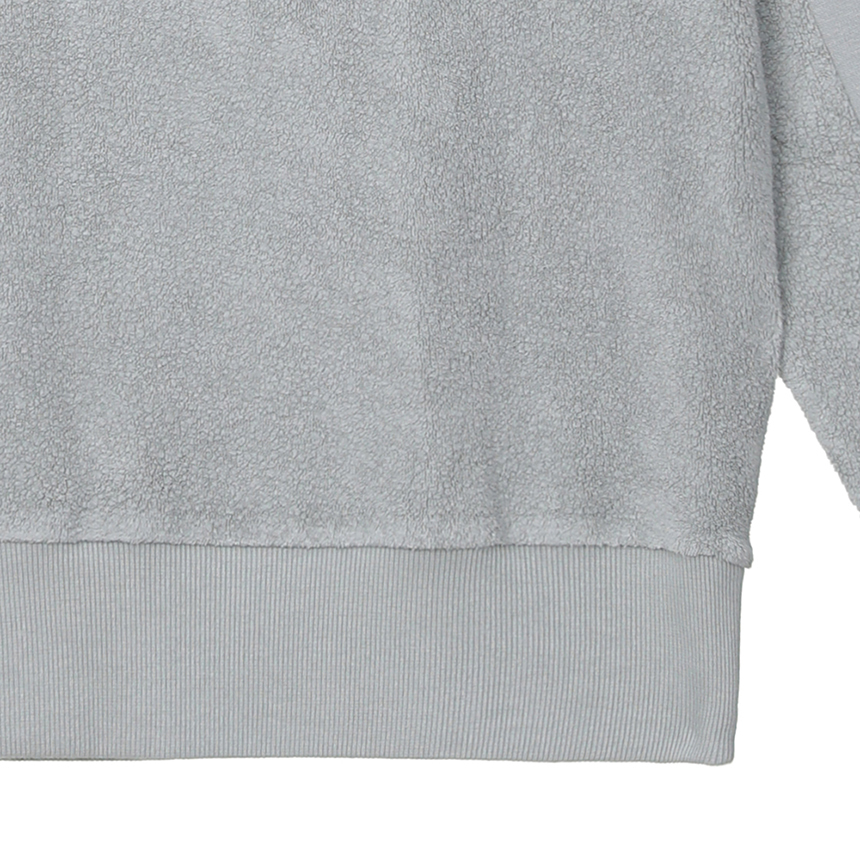 나우의 시그니쳐 소재인 코튼캔디(솜사탕) 20FW 맨투맨, 가슴에 구글 위치코드 프린트가 디자인 포인트가 되는 제품