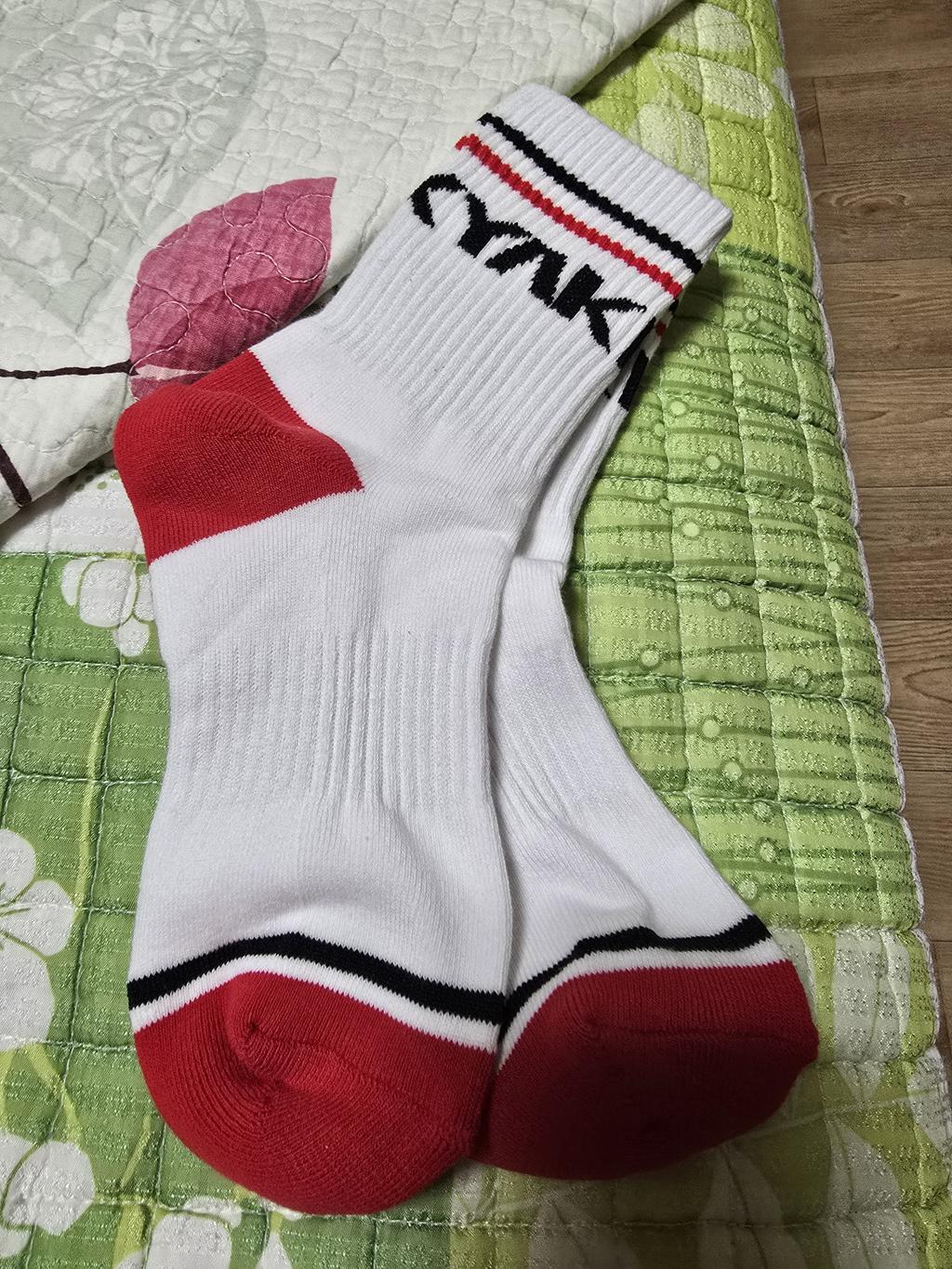 발등에 고무사를 사용하고 직각 편직으로 착용감을 높였습니다