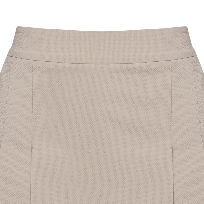 - 써커 조직감이 돋보이는 하프팬츠로, 앞판 플리츠 커버 디테일로 큐롯처럼 보이는 여성스러운 실루엣을 연출