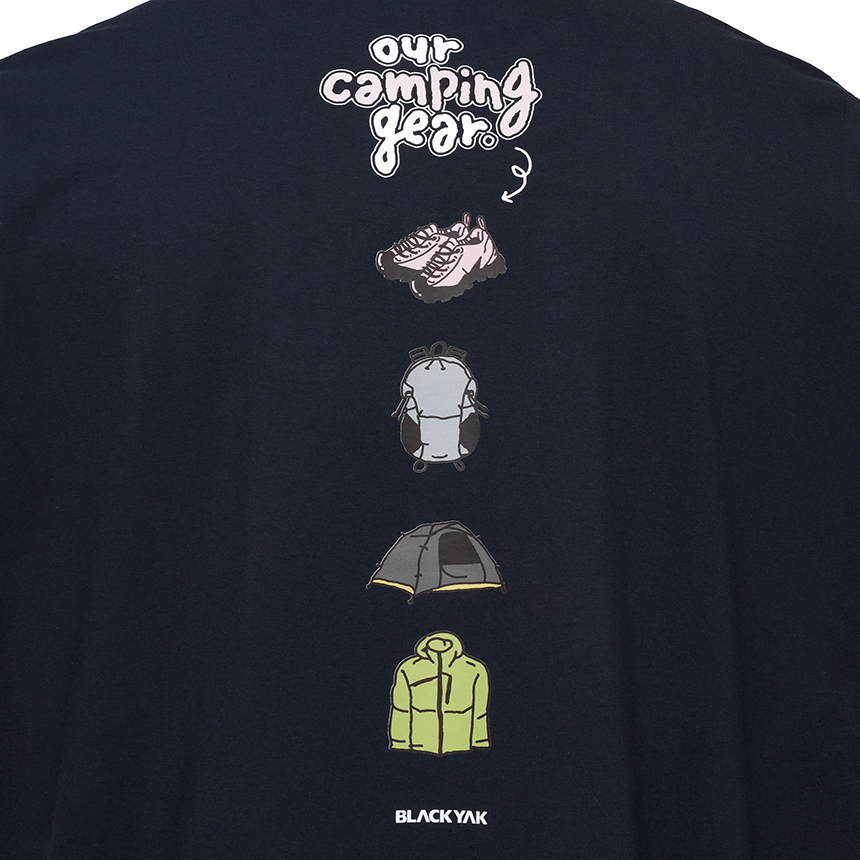 뒷면에 블랙야크만의 캠핑 그래픽을 적용하여 포인트를 주었습니다.