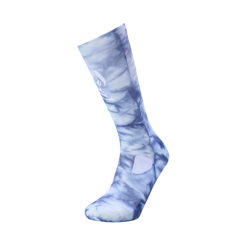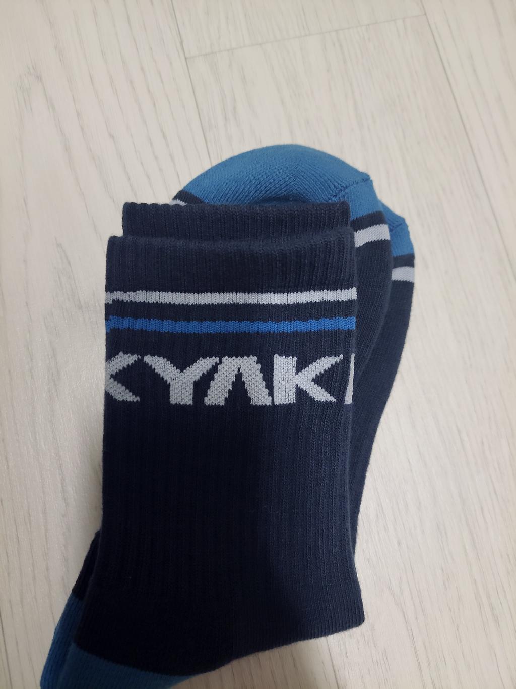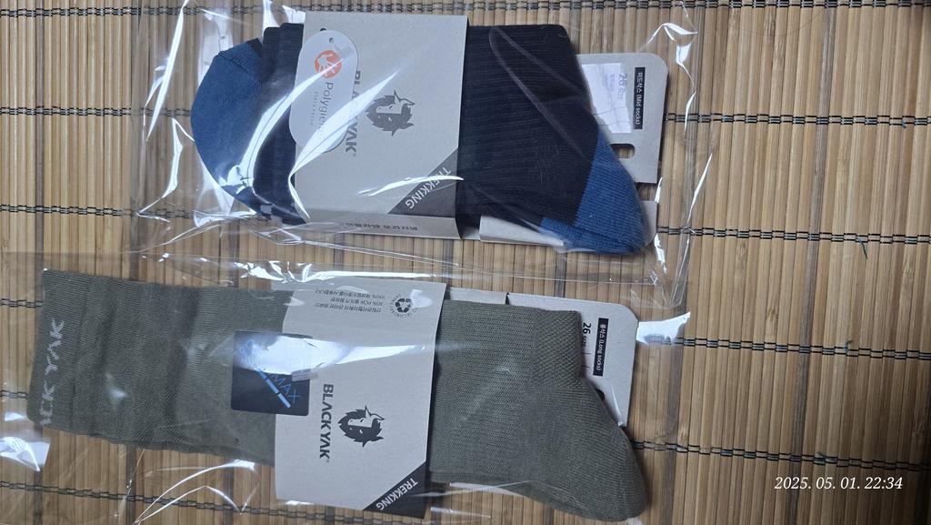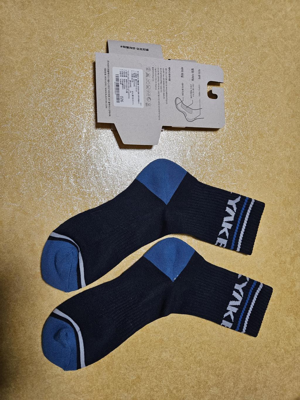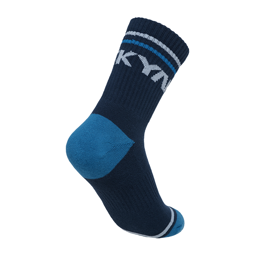 폴리진 가공과 발목 스트라이프 패턴, 로고 포인트가 특징인 미드컷 등산 양말입니다.