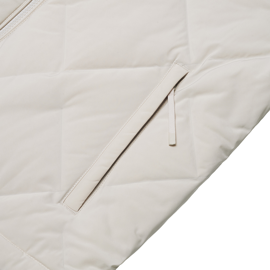 DUCK DOWN 80:20 충전재를 사용하고 퍼카라 디테일로 보온성을 강화하였고, 다이아 패턴과 퍼카라 포인트로 캐주얼한 스타일링 연출이 가능합니다.