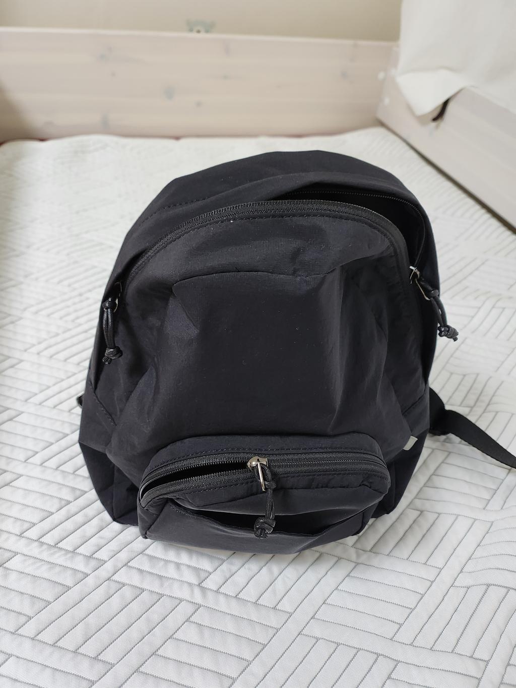 작은 사이즈임에도 프런트에 서브 지퍼와 오픈 포켓이 추가로 있어 수납력이 우수함.