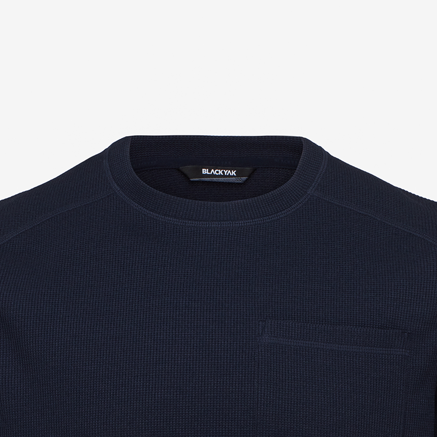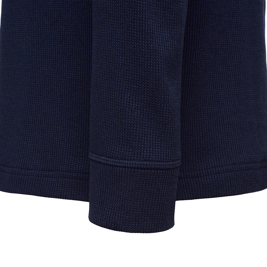 표면이 와플모양과 같은 조직으로 구성된 소재를 사용하여, 공기순환을 원활히 해주고 땀을 빠르게 배출해 쾌적한 착용감을 제공합니다. 또한 원단과 피부사지에 미세한 공기층을 형성해 적당한 보온성을 제공하며 등산시 체온조절에 유리합니다.