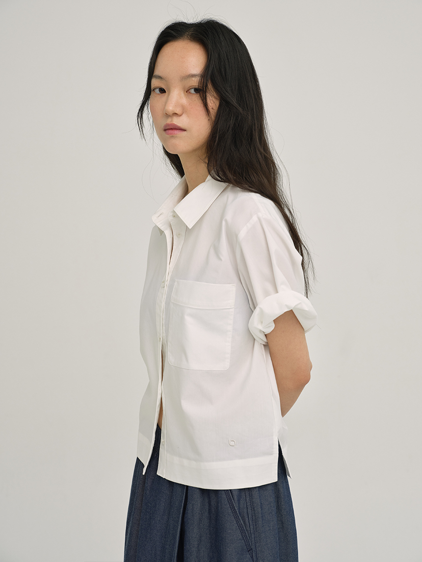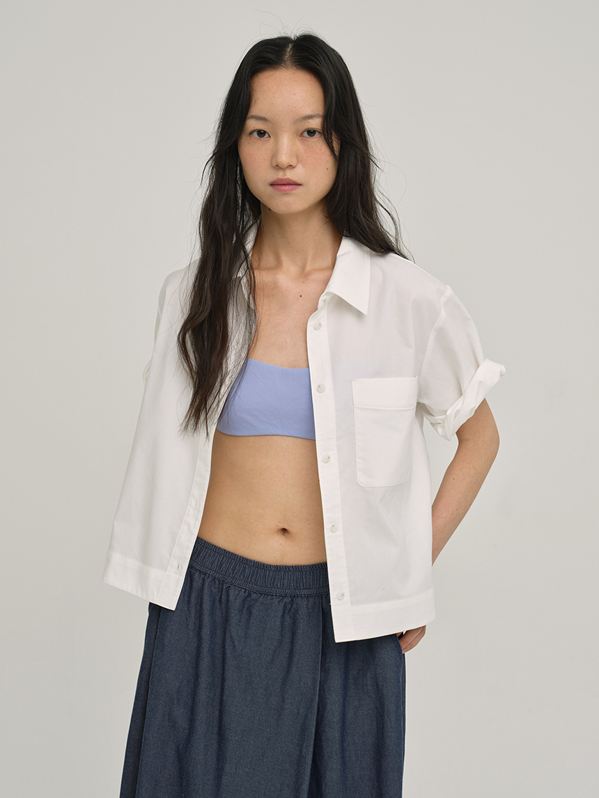 클린하고 미니멀한 실루엣에 가슴 포켓이 포인트인 크롭 셔츠입니다.