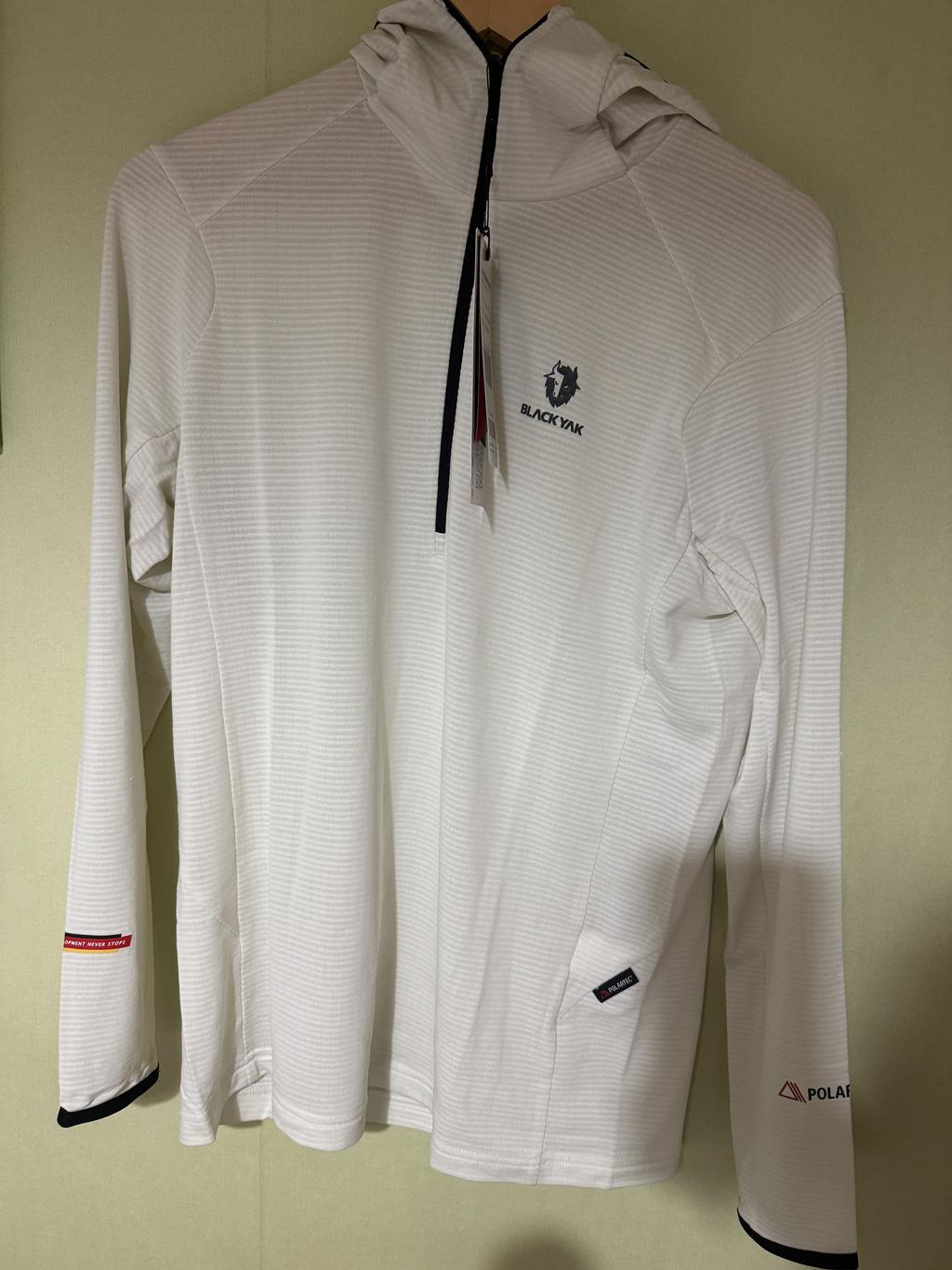 경량성과 보온성이 우수한 폴라텍(Polartec®)사의 파워 그리드(Power Grid™) 소재를 사용한 후디 일체형 하프집업입니다.