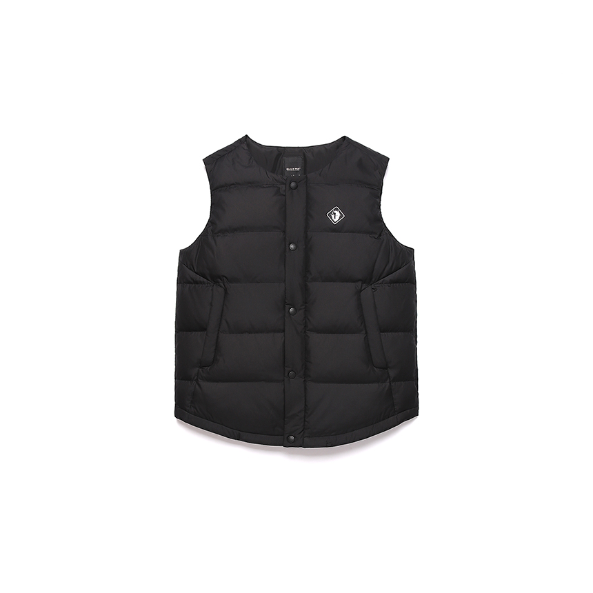 라운드넥 다운베스트에 프론트 썬그립 스냅적용으로 쉽게 여밈이 가능함