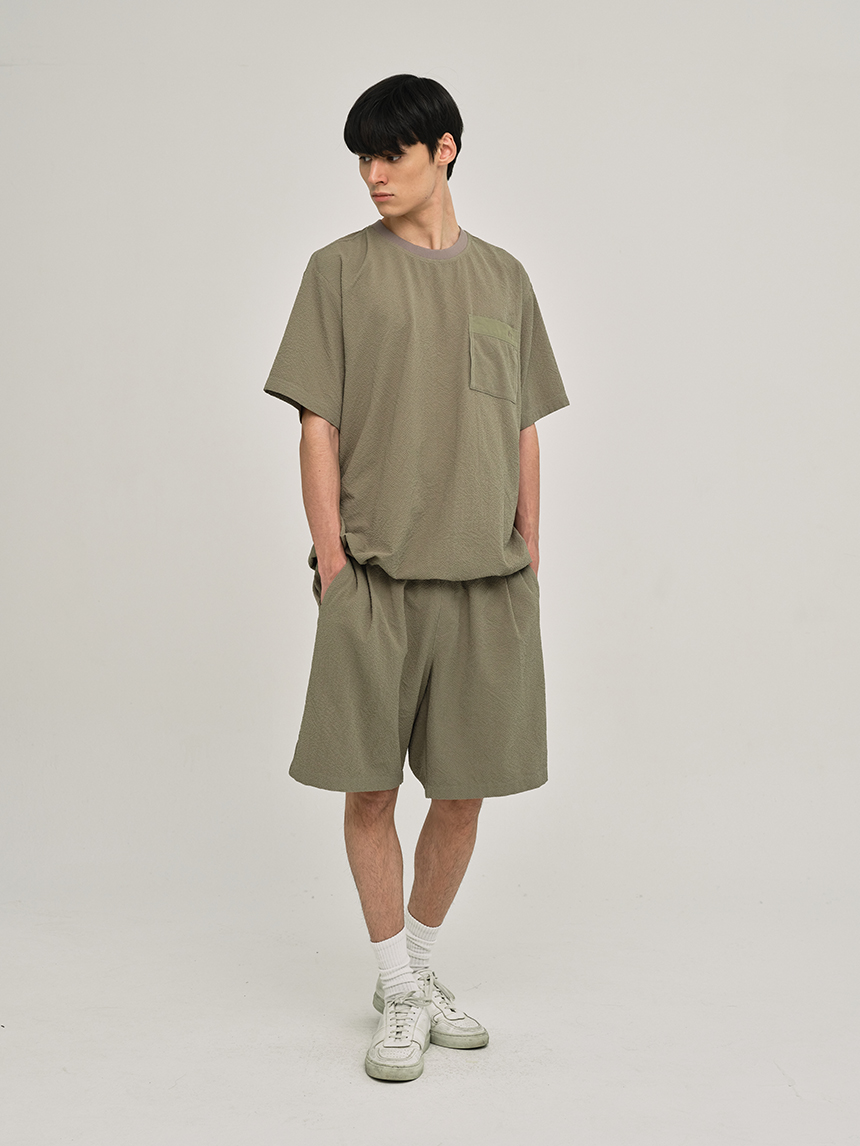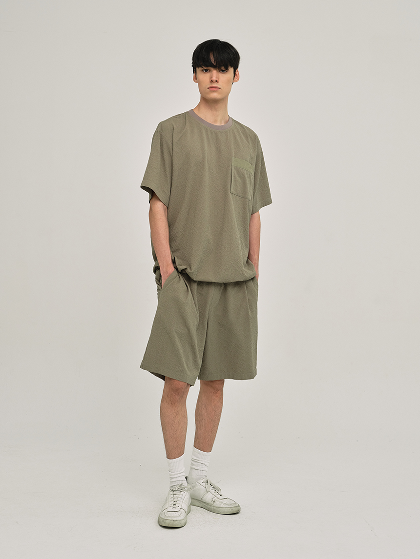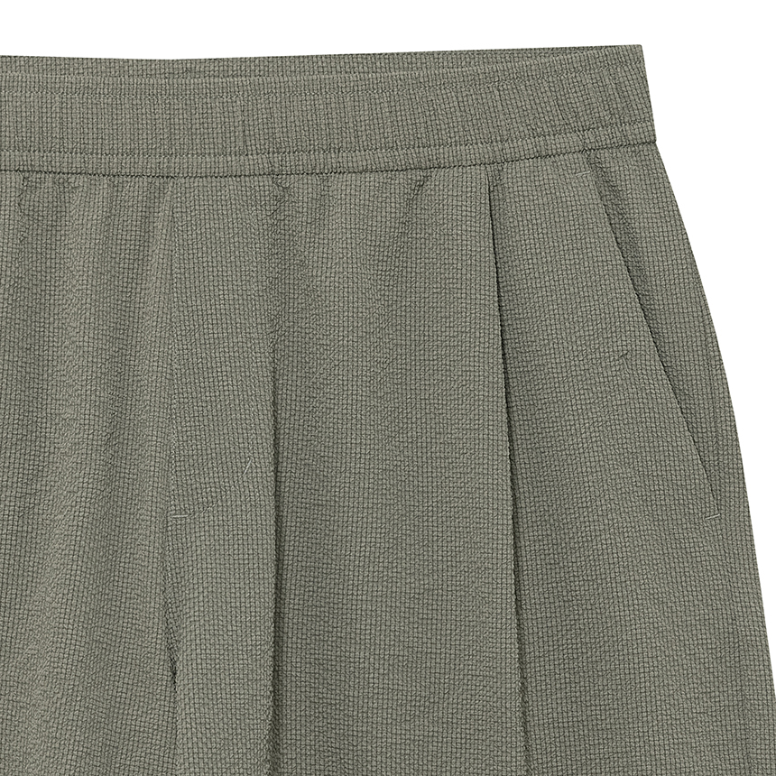 시어서커 소재를 사용하여 통기성이 뛰어나며 표면의 요철감 덕분에 쾌적하고 시원한 착용감을 제공합니다.