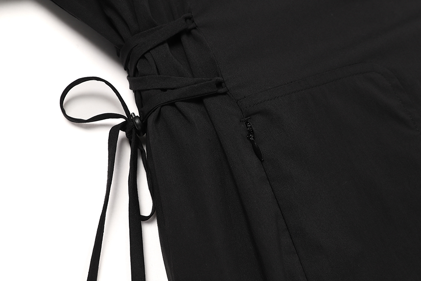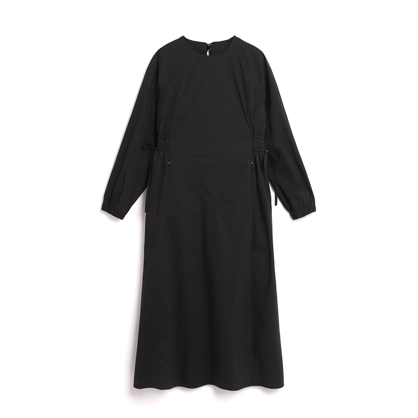 옆선의 끈 조절 기능으로 루즈한핏과 페미닌한 핏의 실루엣 연출이 가능합니다.