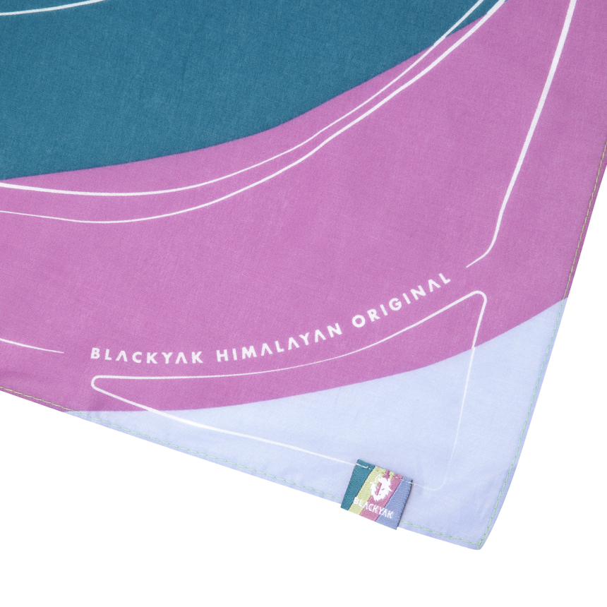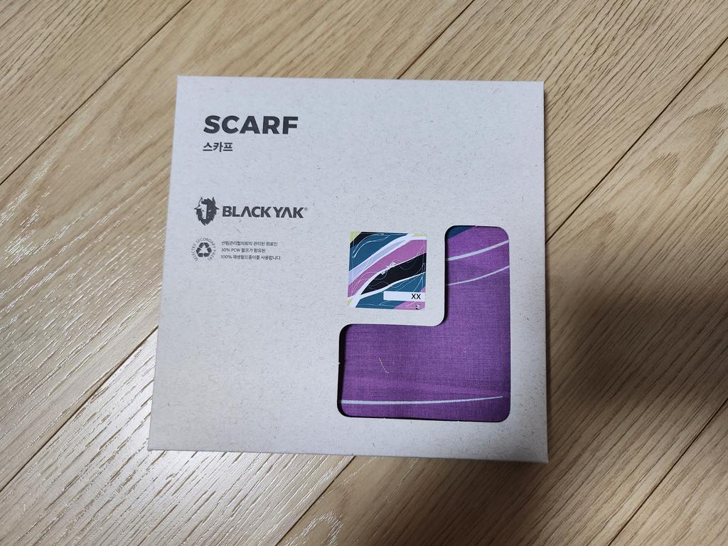 블랙야크의 히말라야 그래픽이 그려진 면 80수 스카프입니다.