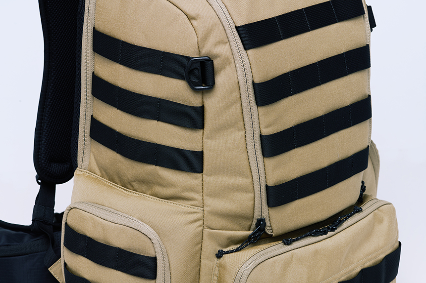 가방전에체 적용되어있는 웨빙 스트랩과 어깨끈 버클들을 통해서 택티컬 보틀포켓뿐만아닌 다양한 악세사리들을 결착할수 있습니다.