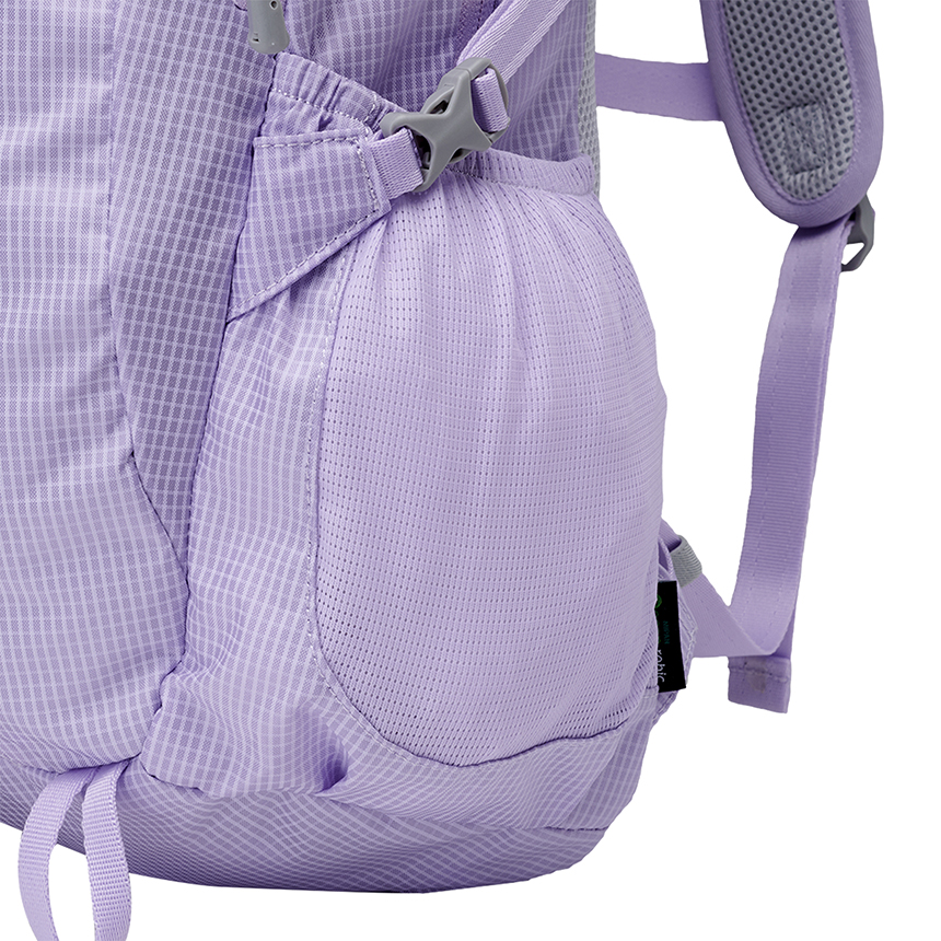 양쪽 사이드에는 500ml 물병 등 다양한 소지품 수납이 가능한 메쉬 포켓을 적용했으며, 사이드 웨빙을 통해 내용물을 안정적으로 고정할 수 있습니다.