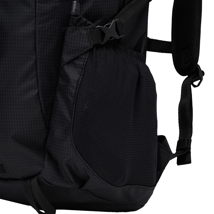 양쪽 사이드에는 500ml 물병 등 다양한 소지품 수납이 가능한 메쉬 포켓을 적용했으며, 사이드 웨빙을 통해 내용물을 안정적으로 고정할 수 있습니다.