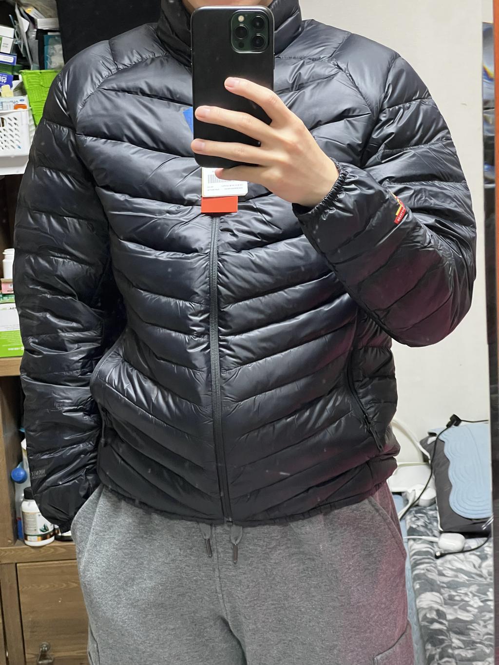 | 소재 | 겉감 : 나일론 100%, 안감 : 나일론 100%, 주머니감 : 폴리에스터 100%, 충전재 : 깃털 10%, 충전재 : 솜털 90% |