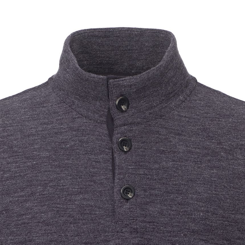 - 소프트한 터치감의 멜란지 니트페이스 원단의 버튼 티셔츠