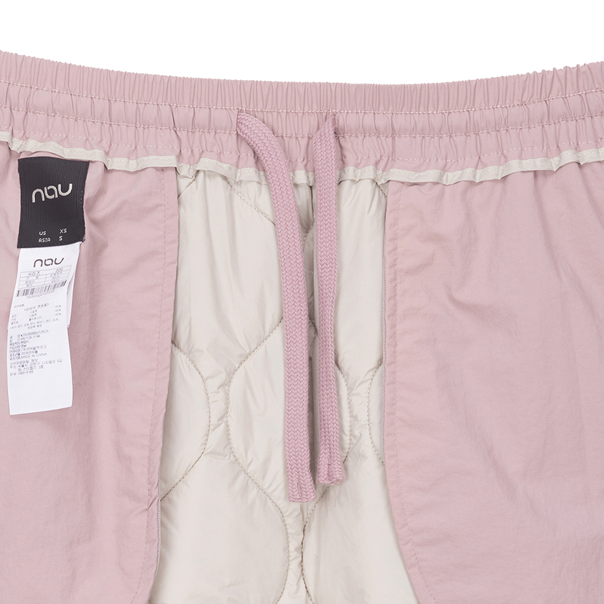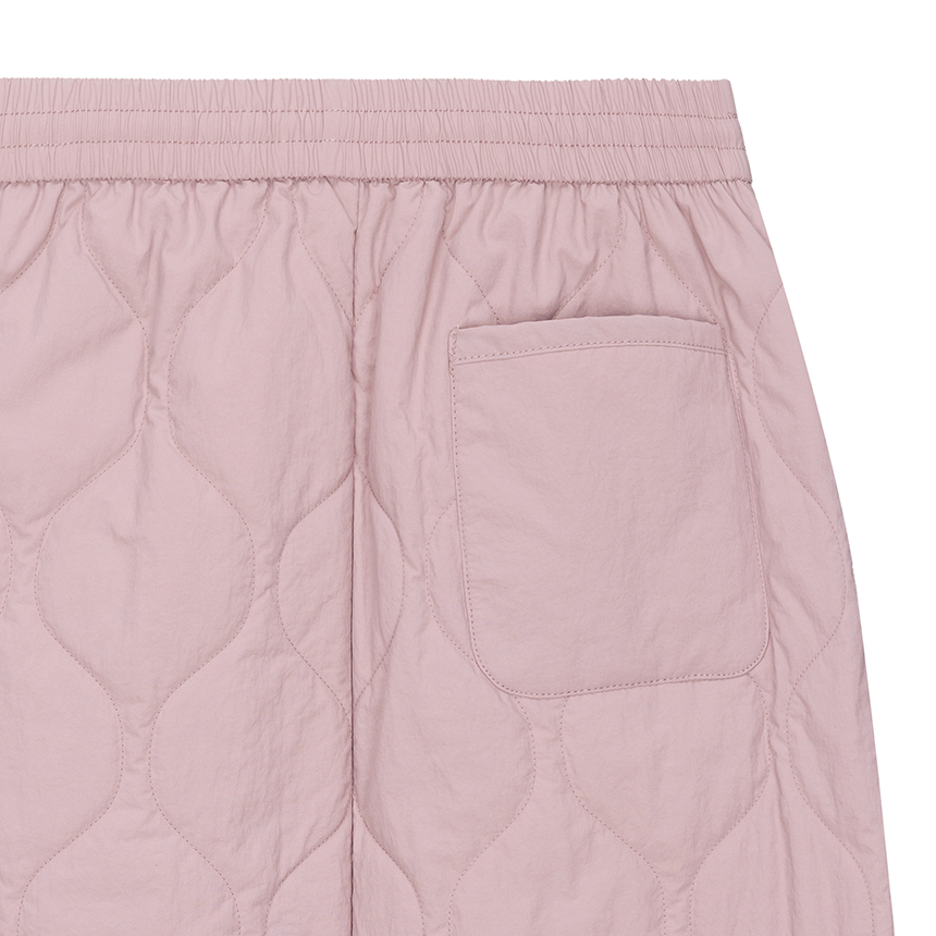 허리 풀 밴딩, 스트링 내장, 물결 퀼팅 디자인이 특징입니다.