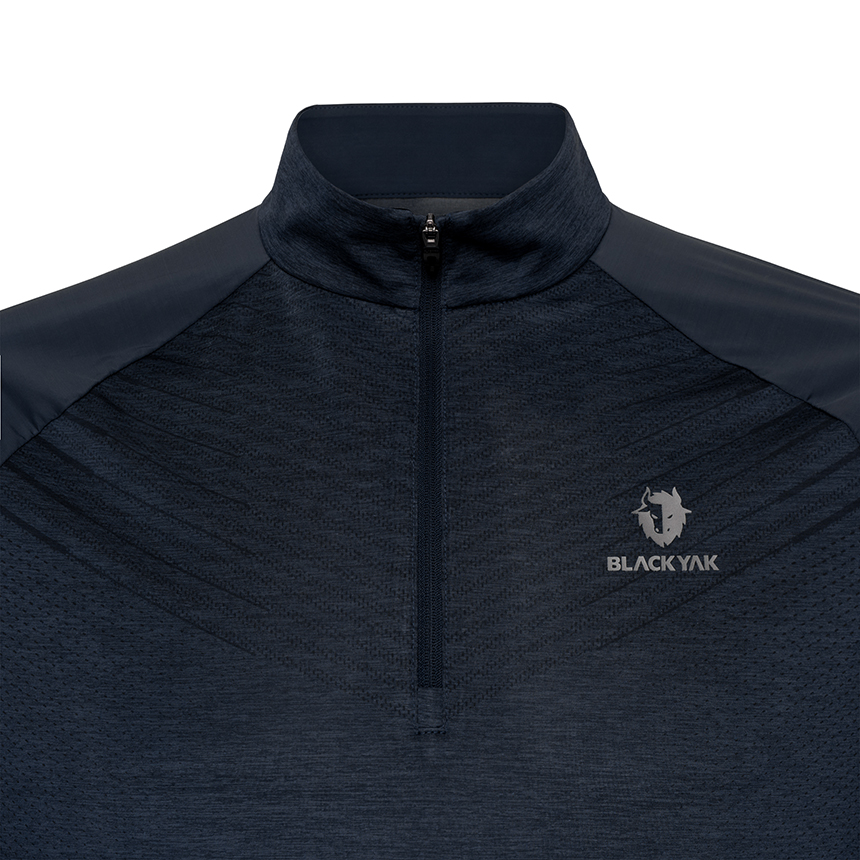 블랙야크를 형상화한 그래픽 프린트가 돋보이는 집업 긴팔 티셔츠입니다.