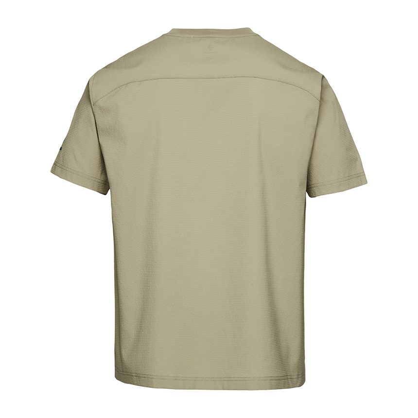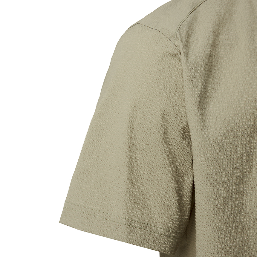 시어서커 원단으로 제작된 이 반팔 셔츠는 피부에 달라붙지 않는 요철구조로 통기성과 산뜻한 착용감을 제공하는 아이템입니다.