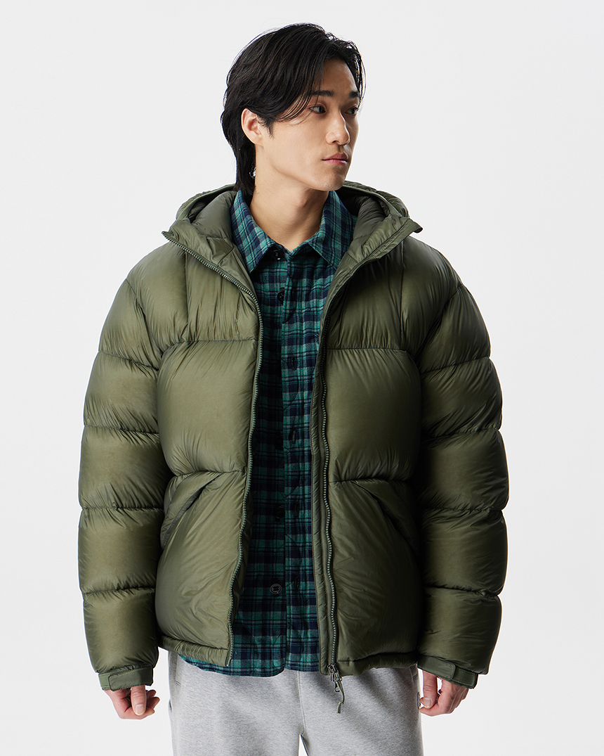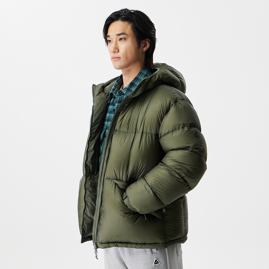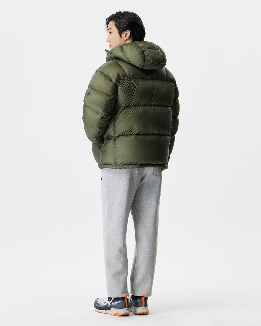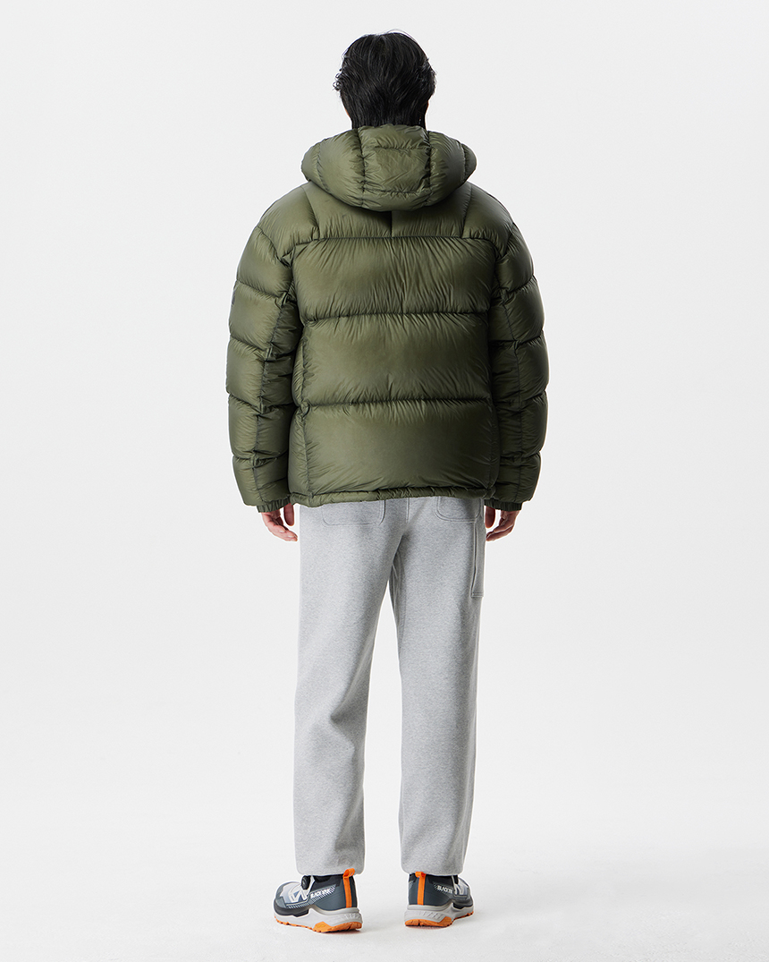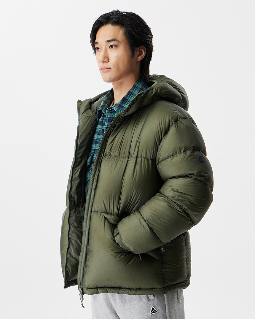 후디 일체형의 미들급 다운으로 경량 소재와 벌키한 RDS 덕다운 90/10 충전재로 경량화에 집중한 공용다운자켓입니다.