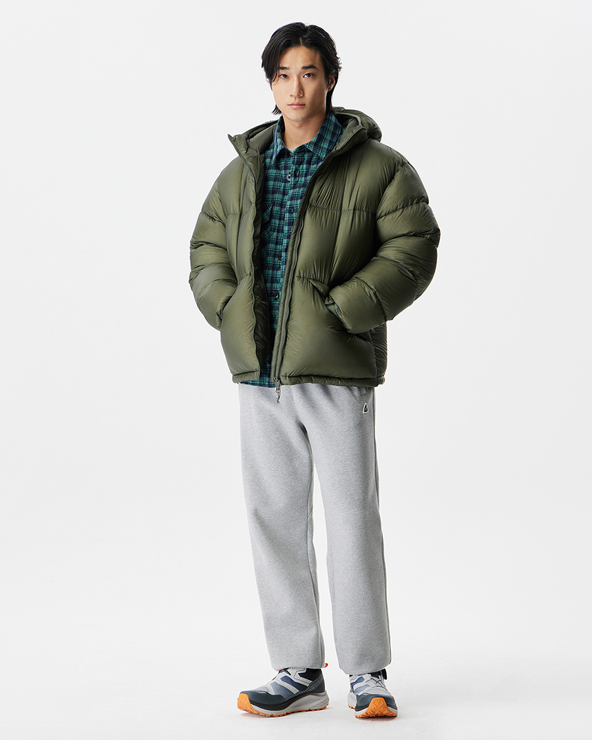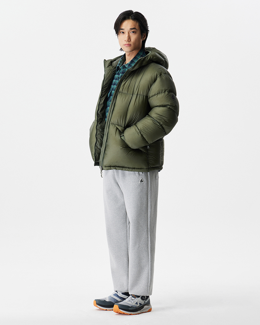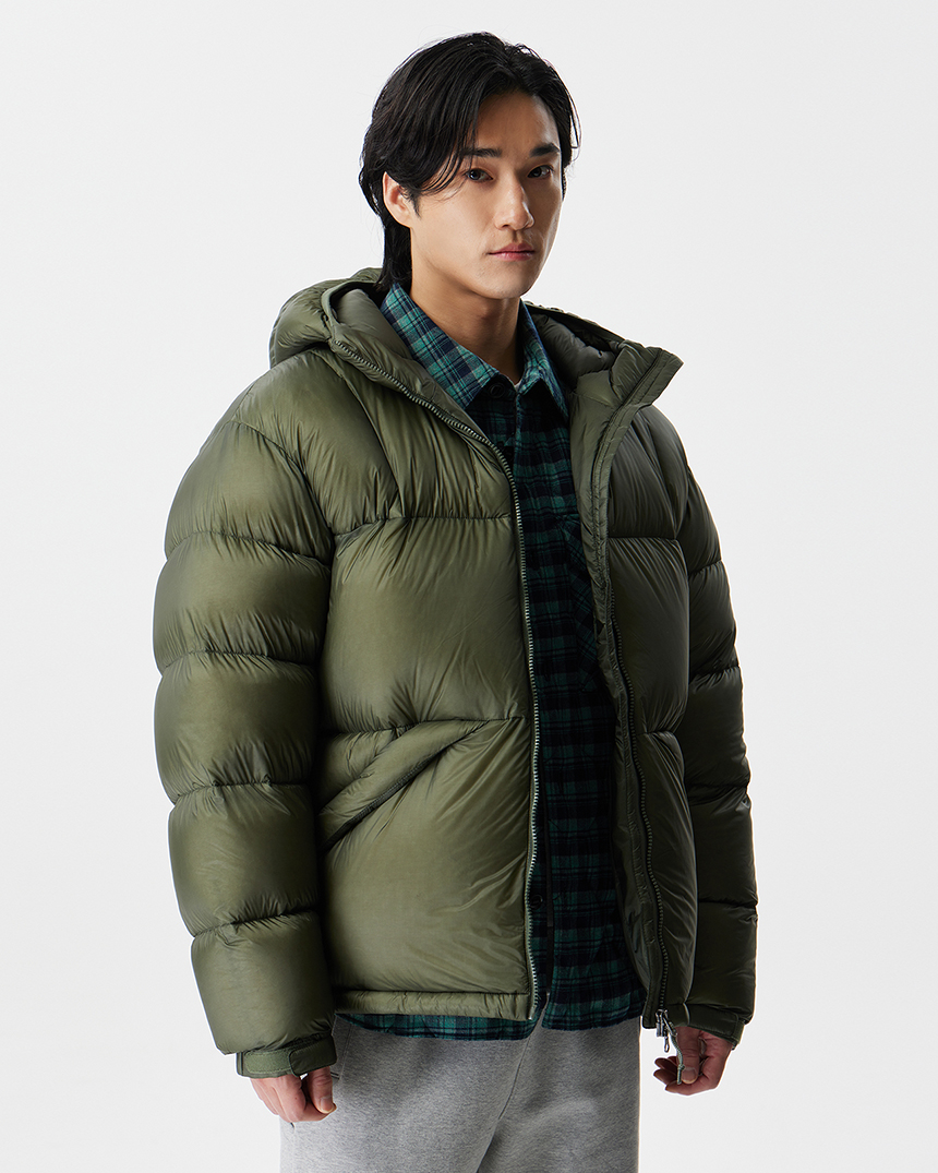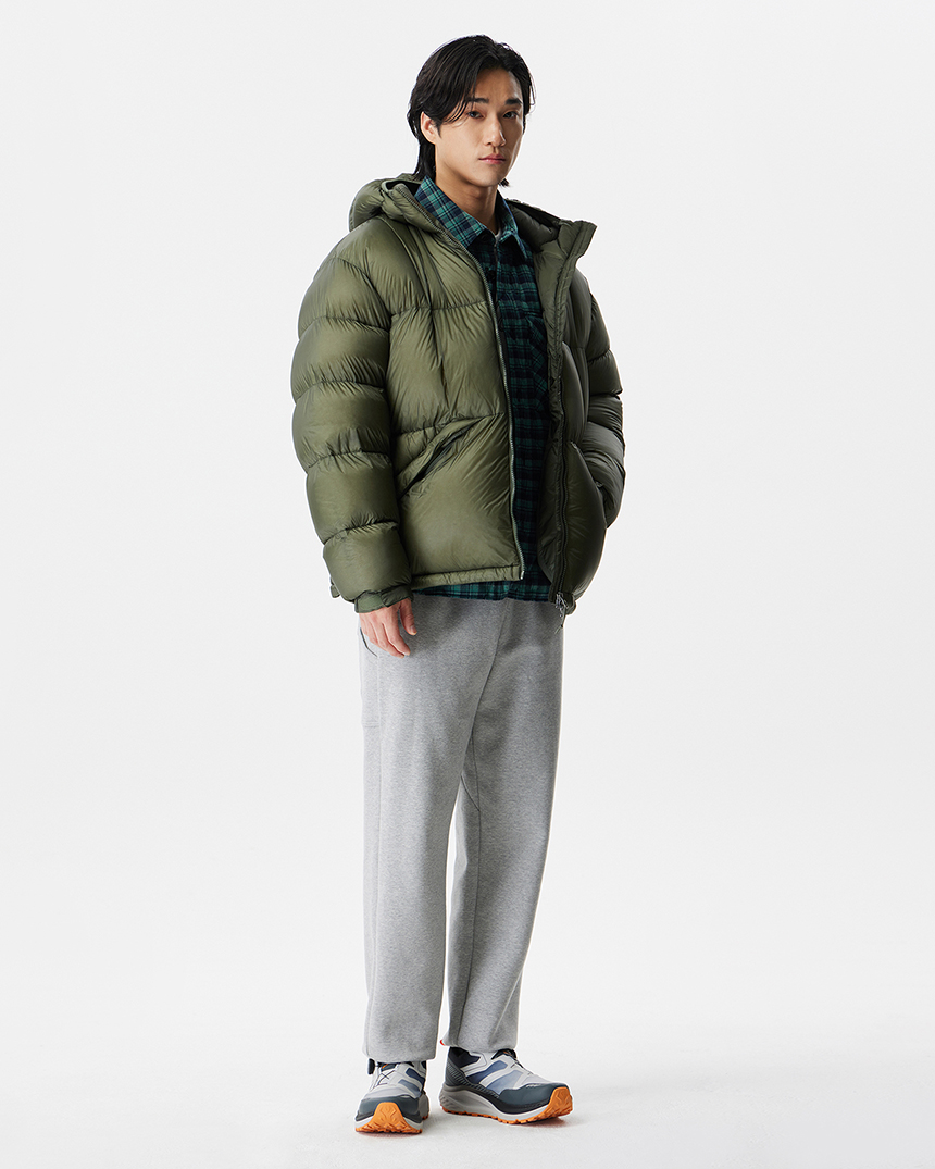 후디 일체형의 미들급 다운으로 경량 소재와 벌키한 RDS 덕다운 90/10 충전재로 경량화에 집중한 공용다운자켓입니다.