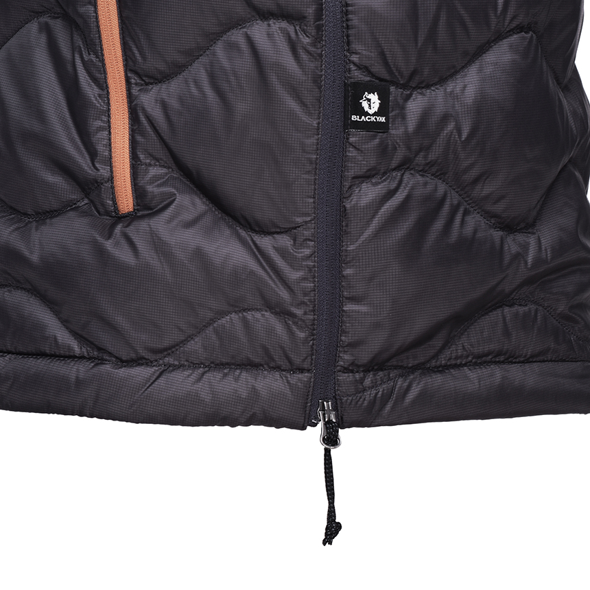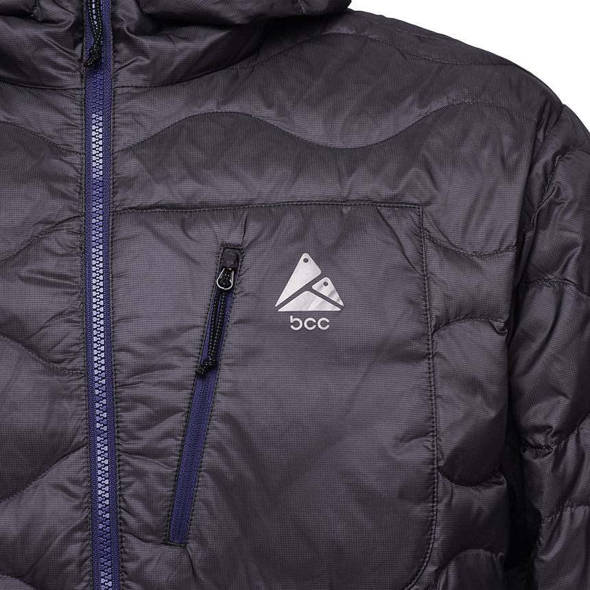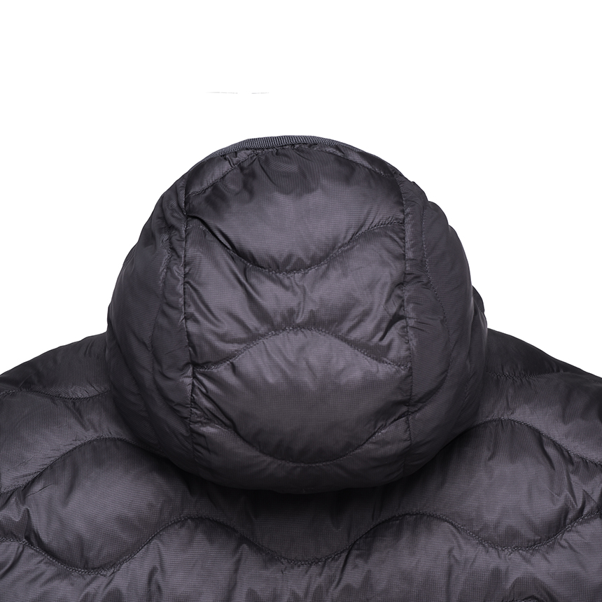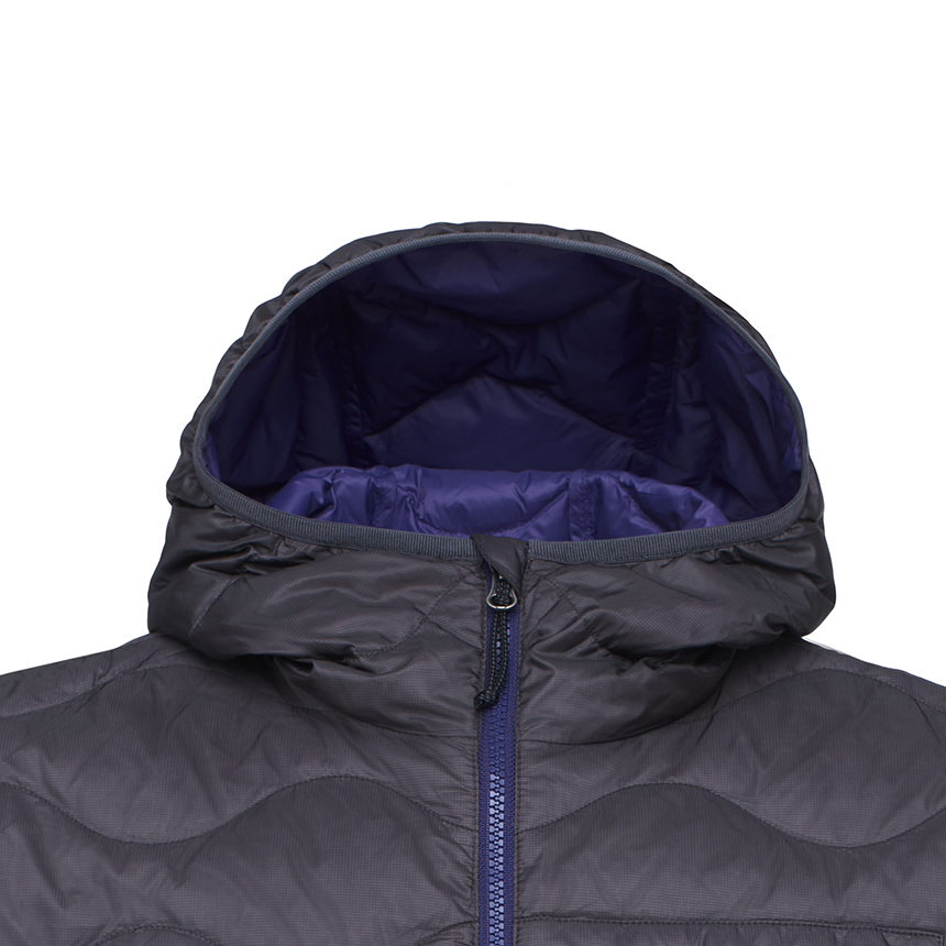 10데니아 초경량 립스탑 소재를 사용한 후드 일체형의 물결 퀼팅 경량 아노락 다운 자켓입니다.