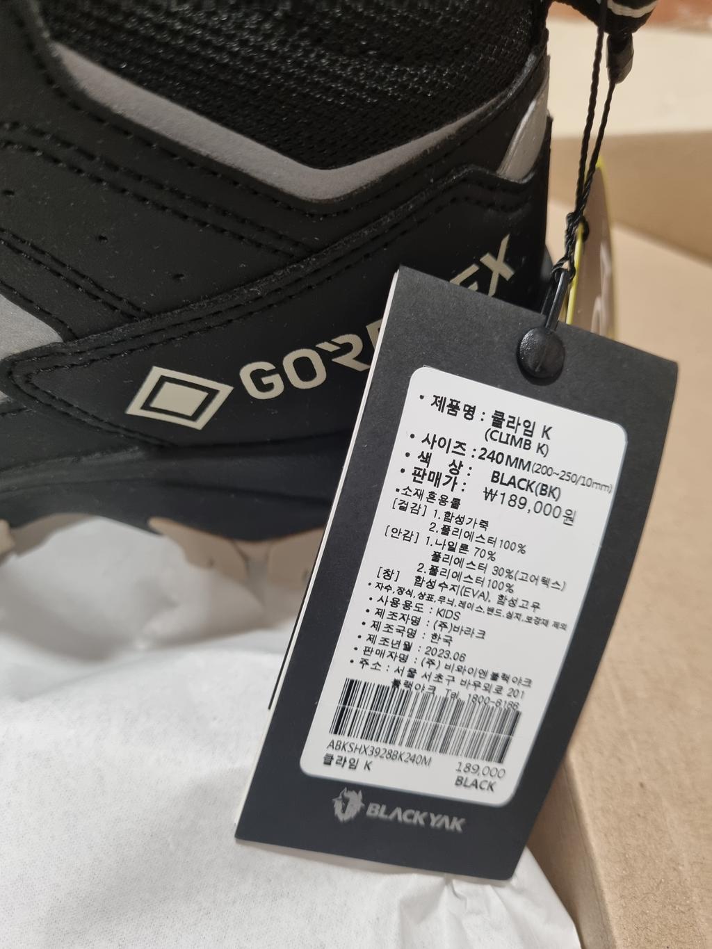 | 소재 | [겉감] 1.합성가죽 2. 폴리에스터 100% [안감] 1.나일론 70% 폴리에스터 30%(고어텍스) 2. 폴리에스터 100% [창] 합성수지(EVA), 합성고무 |