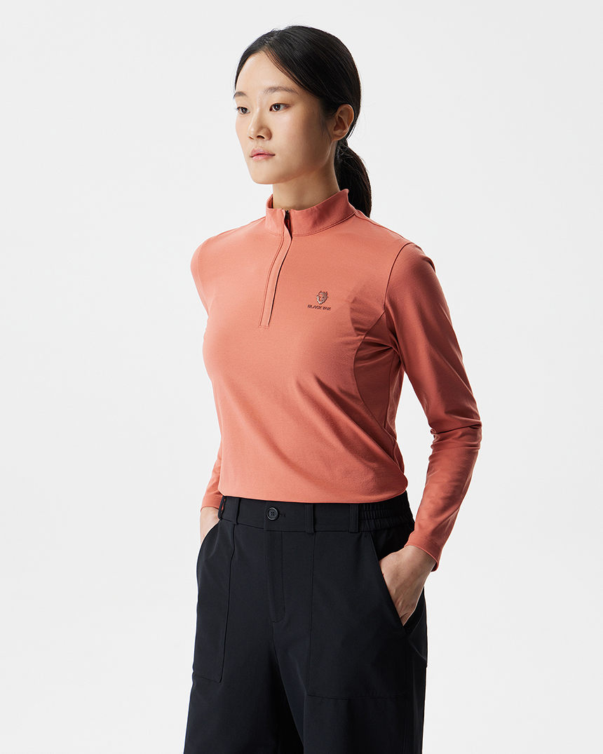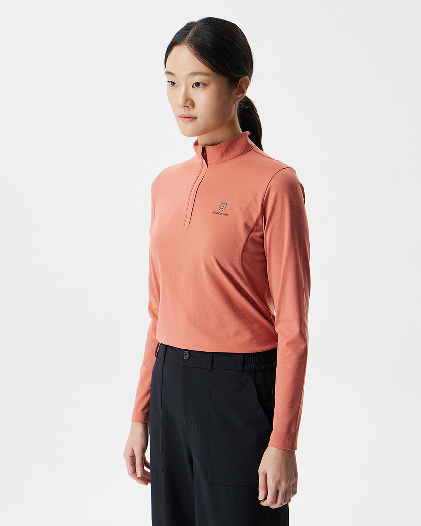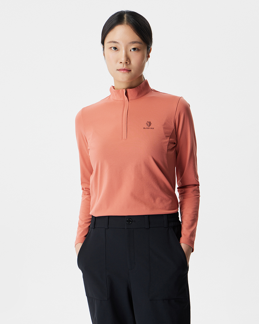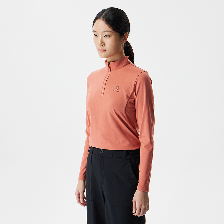 등산 시 가볍게 착용하기 좋은 여성용 집업 긴팔 티셔츠입니다.
