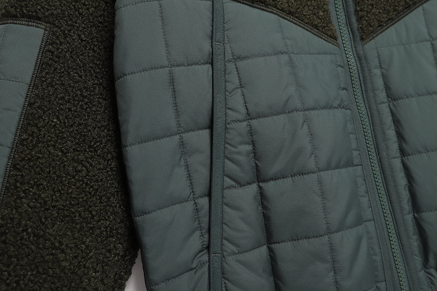 트렌디한 쉐르파소재와 우븐배색 디자인적용