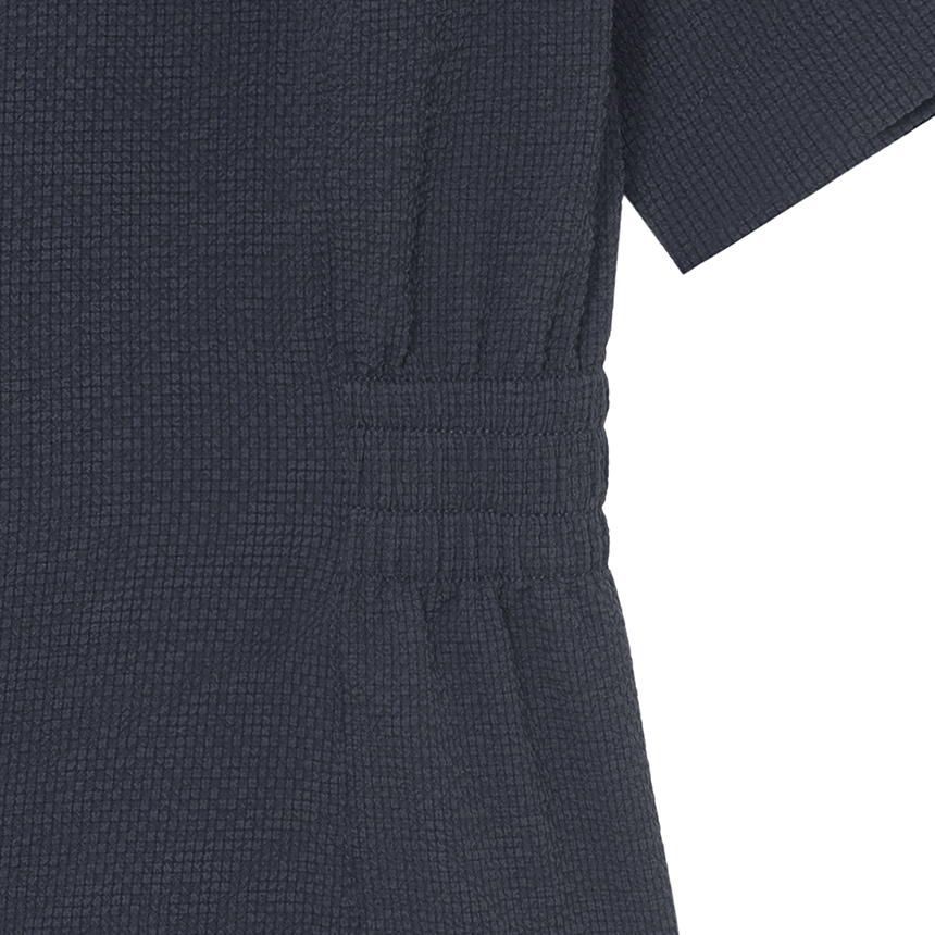 립 조직 넥 라인과 밑단의 허리 옆선 밴딩 처리로 편안하게 착용 가능합니다.